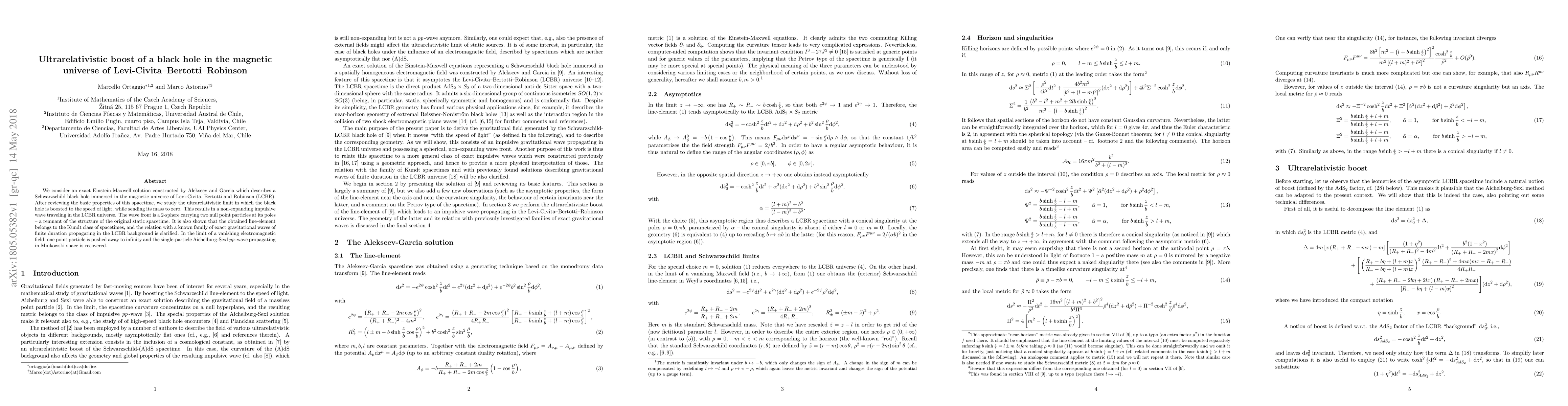 We consider an exact Einstein-Maxwell solution constructed by Alekseev and Garcia which describes a Schwarzschild black hole immersed in the magnetic universe of Levi-Civita, Bertotti and Robinson (LCBR). After reviewing the basic properties of this spacetime, we study the ultrarelativistic limit in which the black hole is boosted to the speed of light, while sending its mass to zero. This results in a non-expanding impulsive wave traveling in the LCBR universe. The wave front is a 2-sphere carrying two null point particles at its poles -- a remnant of the structure of the original static spacetime. It is also shown that the obtained line-element belongs to the Kundt class of spacetimes, and the relation with a known family of exact gravitational waves of finite duration propagating in the LCBR background is clarified. In the limit of a vanishing electromagnetic field, one point particle is pushed away to infinity and the single-particle Aichelburg-Sexl pp-wave propagating in Minkowski space is recovered.