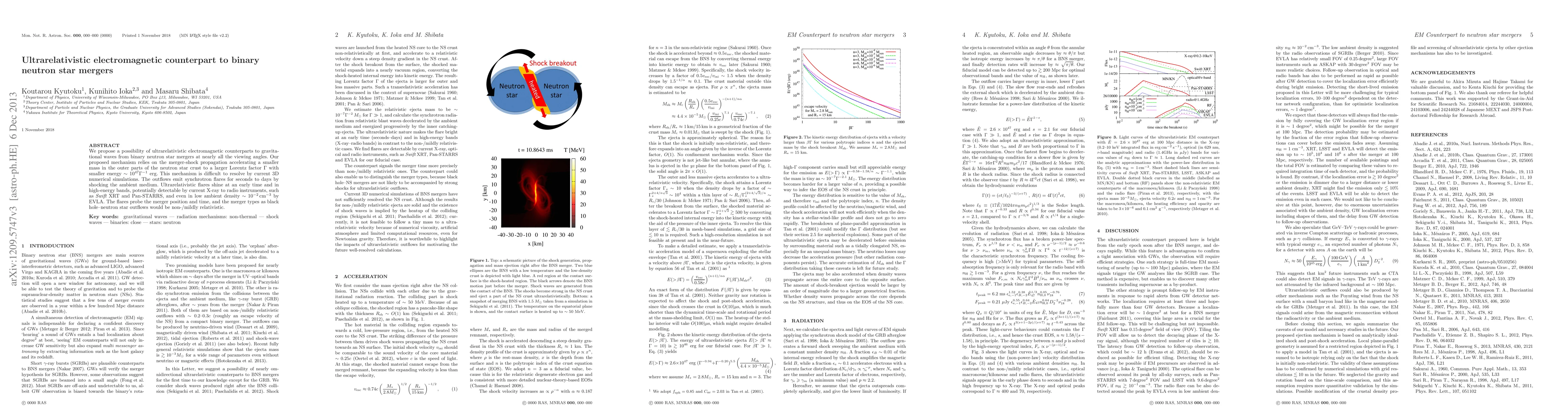 This paper proposes an ultrarelativistic electromagnetic counterpart to gravitational waves from binary neutron star mergers, suggesting that merger-shocks can accelerate outer crust material to high Lorentz factors, emitting detectable synchrotron flares in X-ray to radio bands. These flares could reveal merger details and distinguish between different merger types.