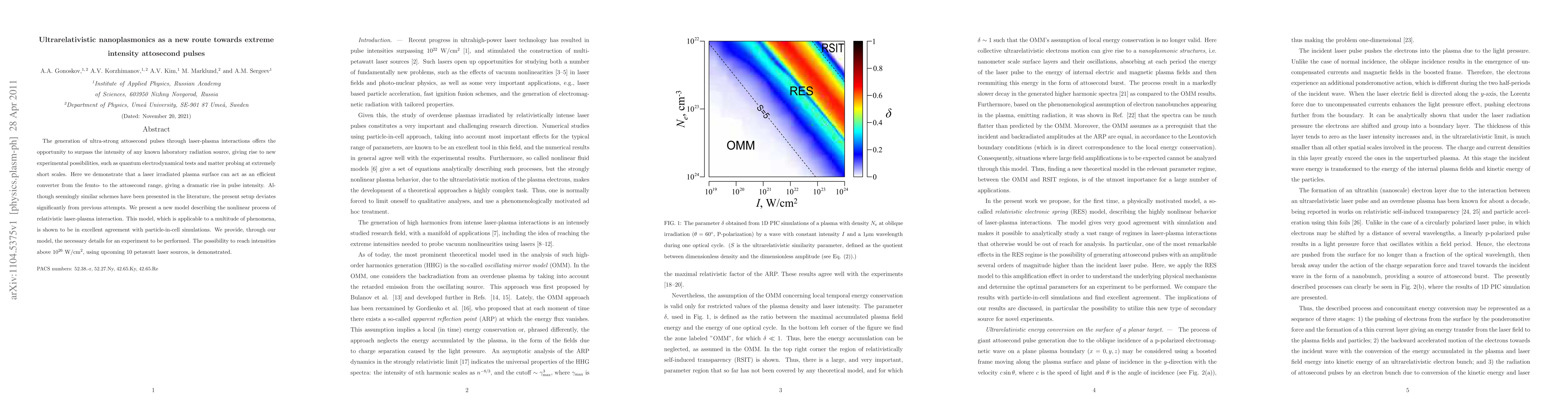 This paper explores ultrarelativistic nanoplasmonics to generate ultra-strong attosecond pulses, surpassing current laboratory radiation sources, and proposes a new model for the nonlinear relativistic laser-plasma interaction that aligns with simulations, enabling experiments to achieve intensities above 10^26 W/cm^2.