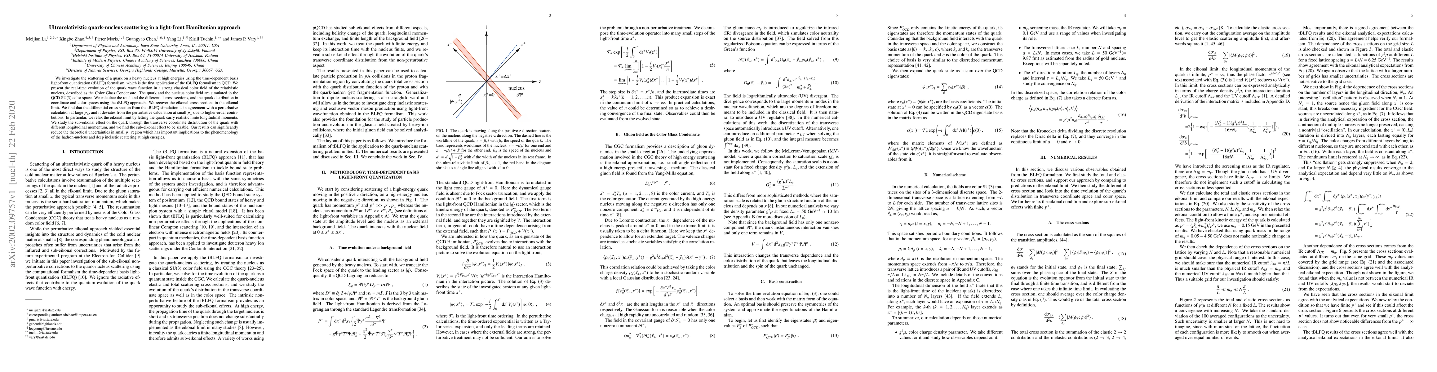 This paper investigates ultrarelativistic quark-nucleus scattering at high energies using the time-dependent basis light-front quantization (tBLFQ) formalism, finding agreement with perturbative calculations at large $p_\perp$ but significant sub-eikonal effects at small $p_\perp$, which can reduce theoretical uncertainties in the small $p_\perp$ region.
