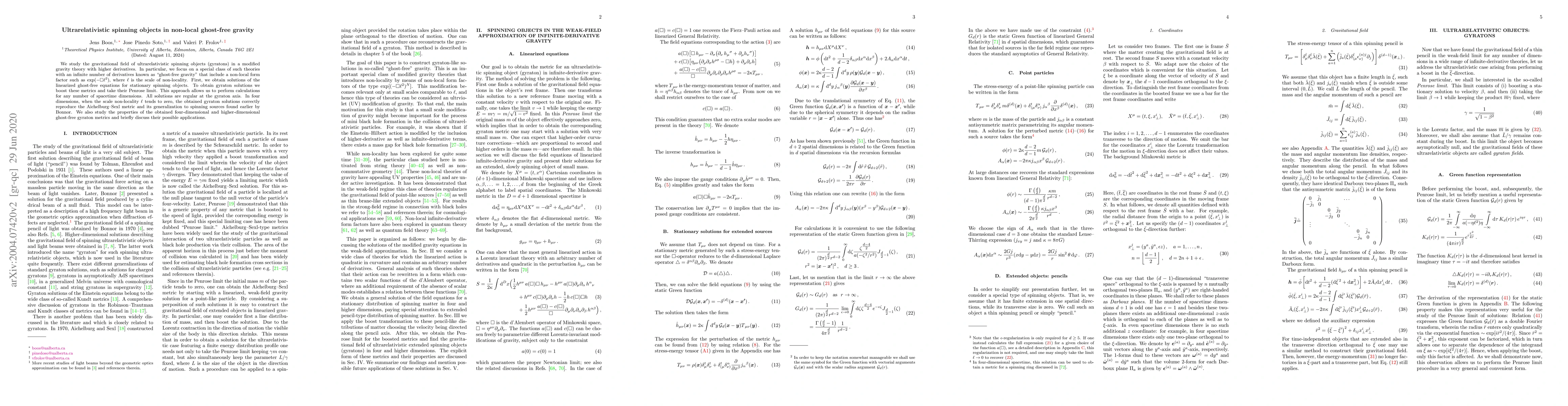 This paper explores the gravitational field of ultrarelativistic spinning objects (gyratons) in a modified gravity theory with higher derivatives, specifically focusing on ghost-free gravity that includes a non-local form factor. The authors derive solutions for stationary and boosted spinning objects, demonstrating regularity at the gyraton axis and showing that the solutions reproduce known metrics in four dimensions.