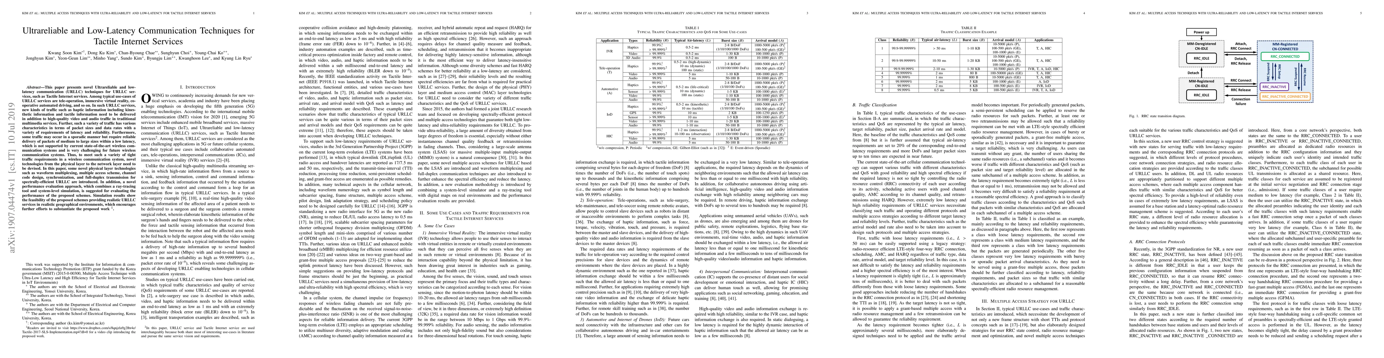 This paper presents novel ultrareliable and low-latency communication (URLLC) techniques for URLLC services, such as Tactile Internet services. Among typical use-cases of URLLC services are tele-operation, immersive virtual reality, cooperative automated driving, and so on. In such URLLC services, new kinds of traffic such as haptic information including kinesthetic information and tactile information need to be delivered in addition to high-quality video and audio traffic in traditional multimedia services. Further, such a variety of traffic has various characteristics in terms of packet sizes and data rates with a variety of requirements of latency and reliability. Furthermore, some traffic may occur in a sporadic manner but require reliable delivery of packets of medium to large sizes within a low latency, which is not supported by current state-of-the-art wireless communication systems and is very challenging for future wireless communication systems. Thus, to meet such a variety of tight traffic requirements in a wireless communication system, novel technologies from the physical layer to the network layer need to be devised. In this paper, some novel physical layer technologies such as waveform multiplexing, multiple access scheme, channel code design, synchronization, and full-duplex transmission for spectrally-efficient URLLC are introduced. In addition, a novel performance evaluation approach, which combines a ray-tracing tool and system-level simulation, is suggested for evaluating the performance of the proposed schemes. Simulation results show the feasibility of the proposed schemes providing realistic URLLC services in realistic geographical environments, which encourages further efforts to substantiate the proposed work.