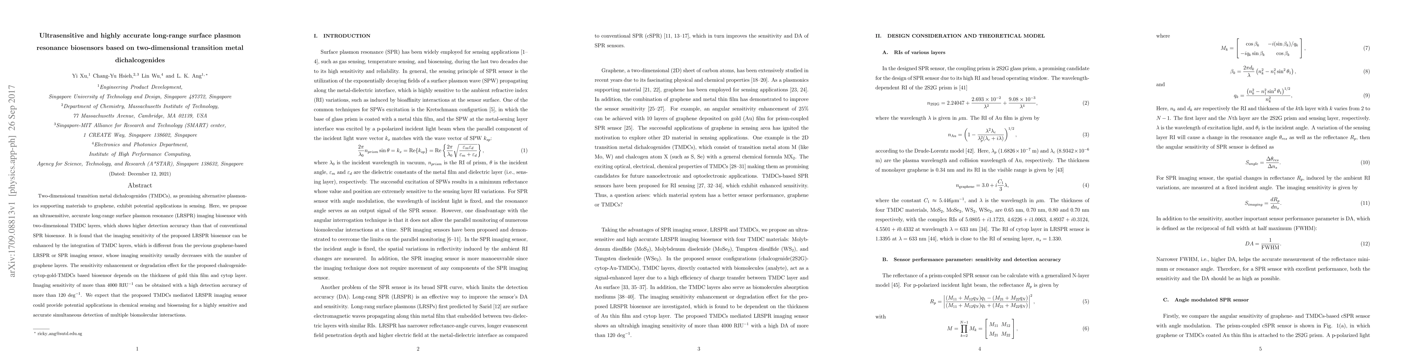 This paper proposes an ultrasensitive long-range surface plasmon resonance (LRSPR) biosensor based on two-dimensional transition metal dichalcogenides (TMDCs) that offers higher detection accuracy than conventional SPR biosensors. The integration of TMDC layers enhances imaging sensitivity, achieving over 4000 RIU$^{-1}$ with a high detection accuracy of more than 120 deg$^{-1}$, suggesting potential applications in chemical and biosensing.