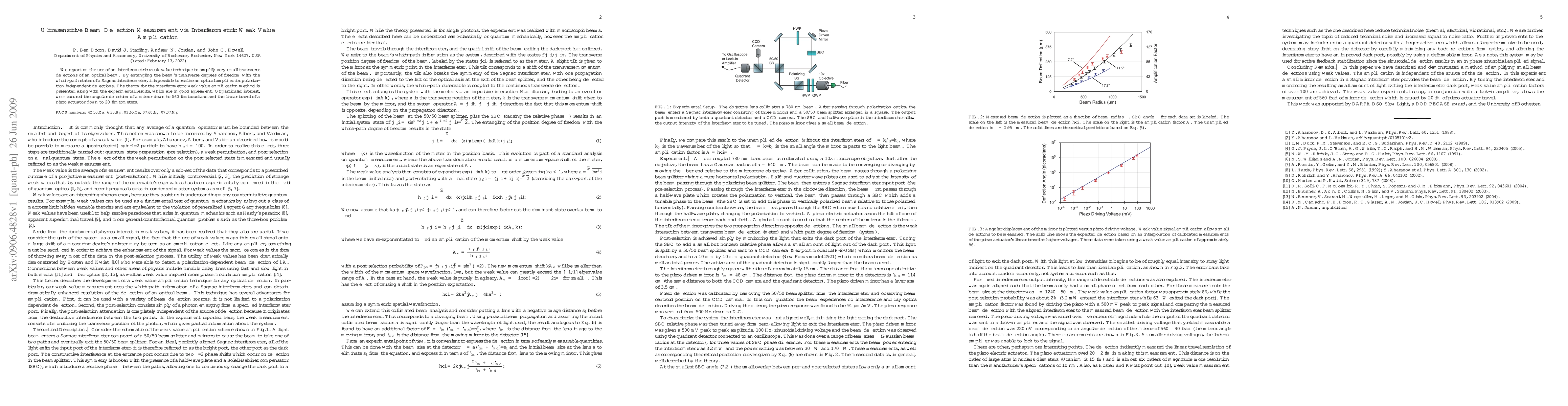 We report on the use of an interferometric weak value technique to amplify very small transverse deflections of an optical beam. By entangling the beam's transverse degrees of freedom with the which-path states of a Sagnac interferometer, it is possible to realize an optical amplifier for polarization independent deflections. The theory for the interferometric weak value amplification method is presented along with the experimental results, which are in good agreement. Of particular interest, we measured the angular deflection of a mirror down to 560 femtoradians and the linear travel of a piezo actuator down to 20 femtometers.