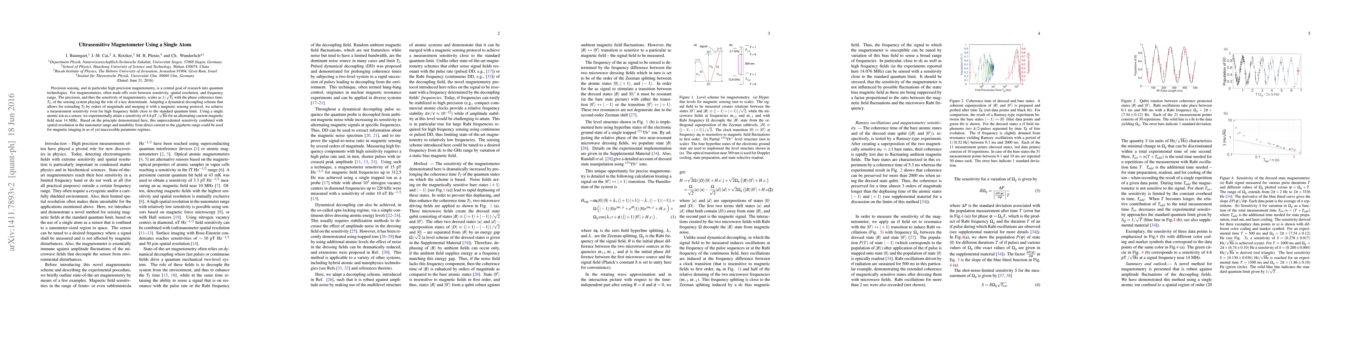 Researchers have developed a magnetometer using a single atom that achieves unprecedented sensitivity for high-frequency fields, with potential applications in magnetic imaging.