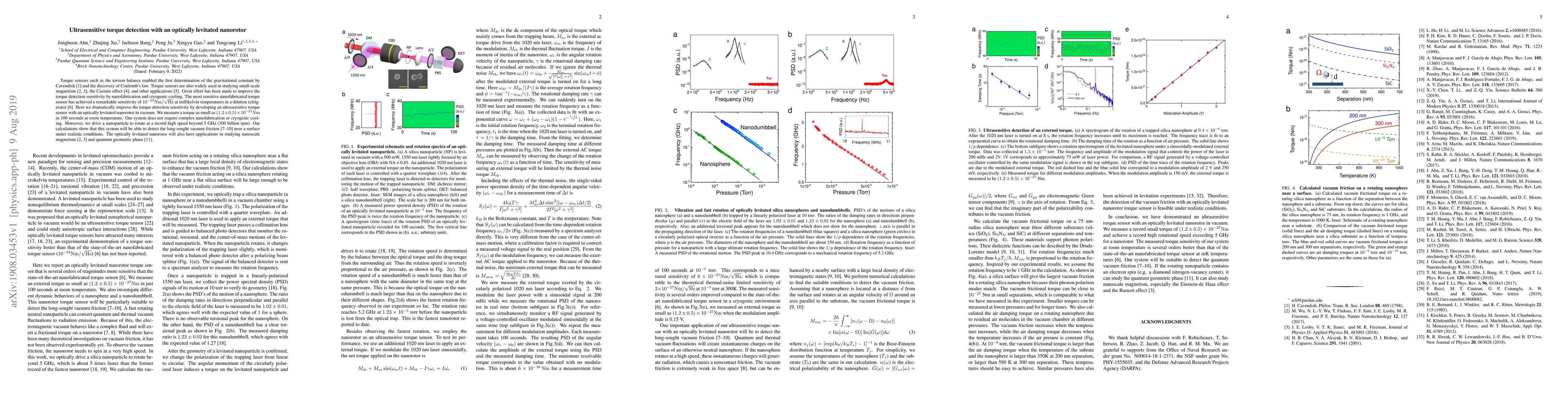 Torque sensors such as the torsion balance enabled the first determination of the gravitational constant by Cavendish and the discovery of Coulomb's law. Torque sensors are also widely used in studying small-scale magnetism, the Casimir effect, and other applications. Great effort has been made to improve the torque detection sensitivity by nanofabrication and cryogenic cooling. The most sensitive nanofabricated torque sensor has achieved a remarkable sensitivity of $10^{-24} \rm{Nm}/\sqrt{\rm{Hz}}$ at millikelvin temperatures in a dilution refrigerator. Here we dramatically improve the torque detection sensitivity by developing an ultrasensitive torque sensor with an optically levitated nanorotor in vacuum. We measure a torque as small as $(1.2 \pm 0.5) \times 10^{-27} \rm{Nm}$ in 100 seconds at room temperature. Our system does not require complex nanofabrication or cryogenic cooling. Moreover, we drive a nanoparticle to rotate at a record high speed beyond 5 GHz (300 billion rpm). Our calculations show that this system will be able to detect the long-sought vacuum friction near a surface under realistic conditions. The optically levitated nanorotor will also have applications in studying nanoscale magnetism and quantum geometric phase.
