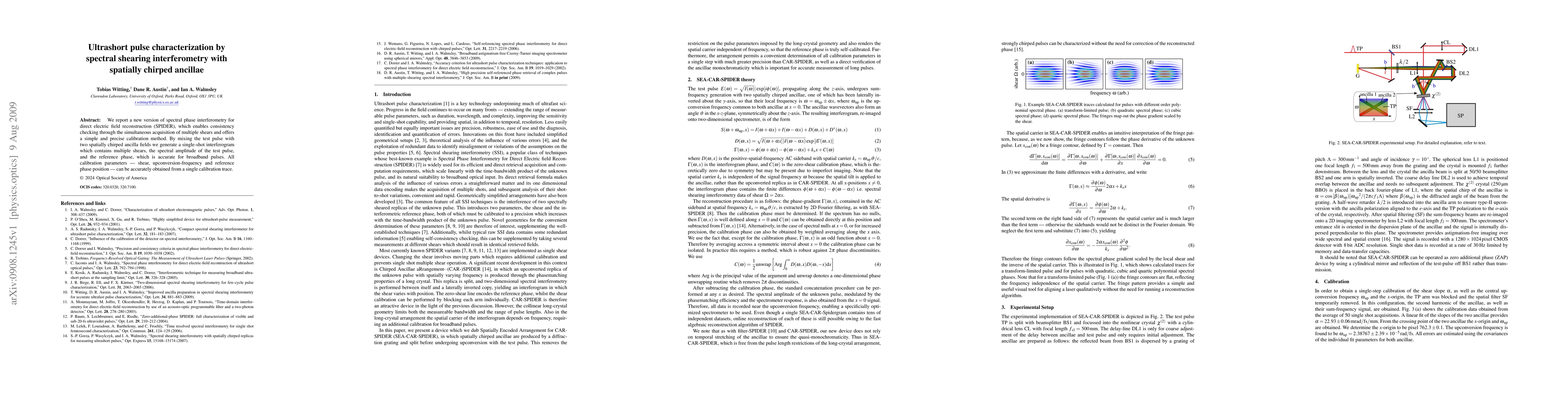 This paper introduces an advanced spectral shearing interferometry method using spatially chirped ancillae for ultrashort pulse characterization, enabling precise calibration and consistency checking through simultaneous acquisition of multiple shears in a single-shot interferogram. The method provides accurate calibration parameters for broadband pulses.