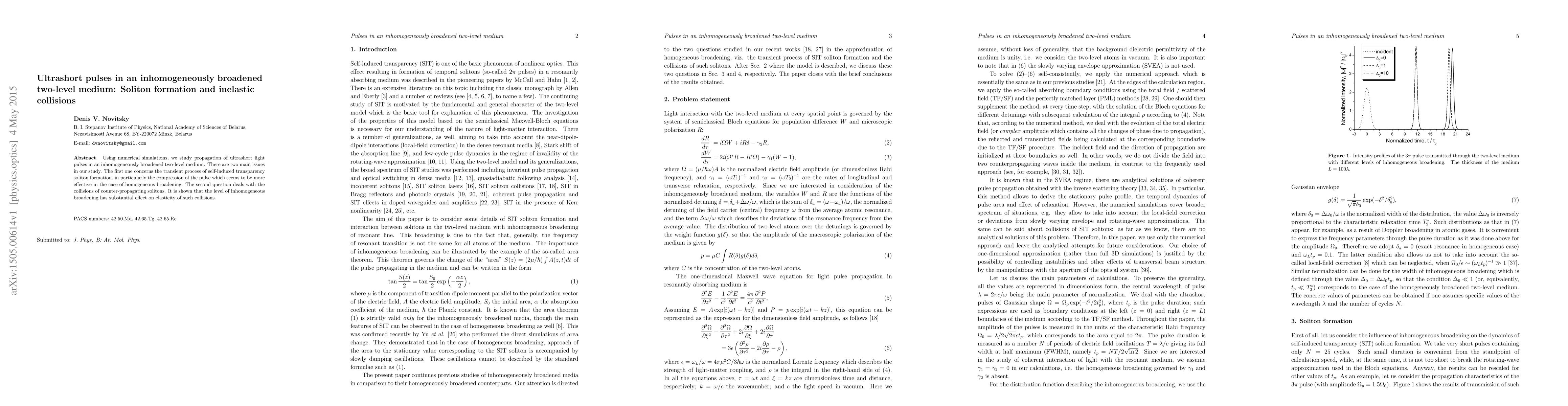 This paper investigates the propagation of ultrashort light pulses in an inhomogeneously broadened two-level medium, focusing on soliton formation and the elasticity of soliton collisions, revealing that the degree of inhomogeneous broadening significantly impacts soliton interactions.