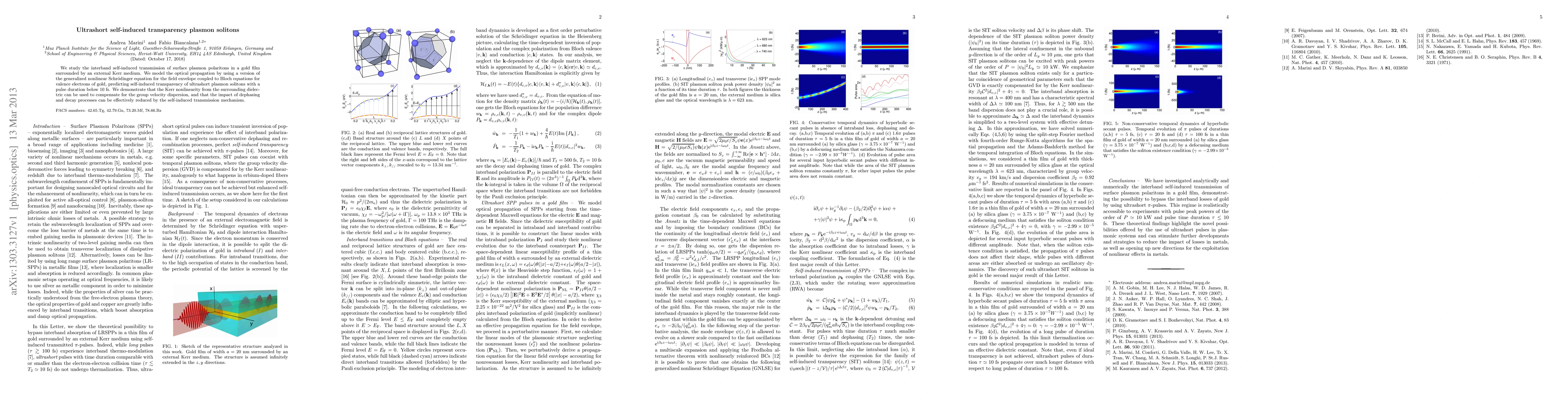 This research investigates the self-induced transparency of ultrashort plasmon solitons in a gold film, employing a generalized nonlinear Schrödinger equation and Bloch equations to model optical propagation. It shows how Kerr nonlinearity in a surrounding dielectric medium can compensate for group velocity dispersion, effectively reducing the impact of dephasing and decay.