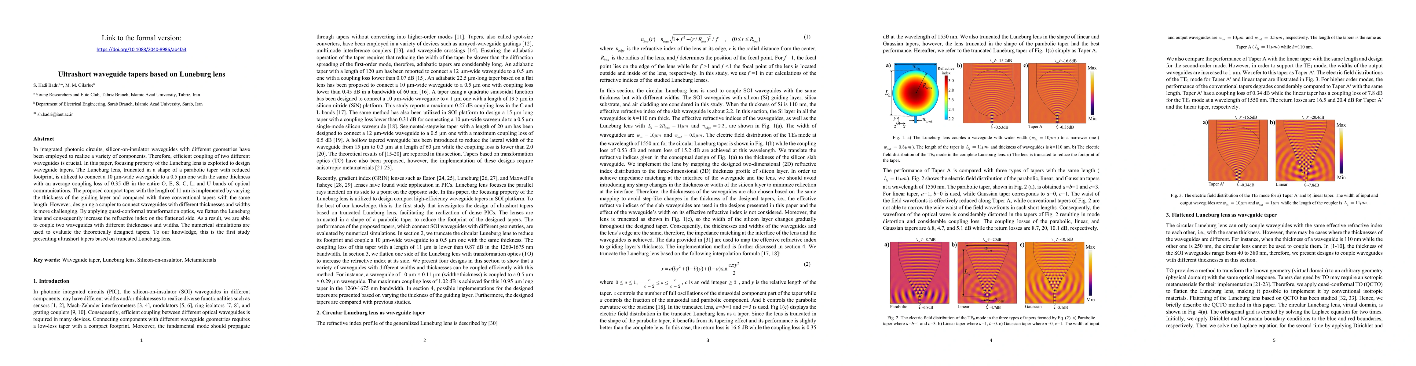 This research presents the first implementation of ultrashort tapers based on truncated Luneburg lenses, offering significant reduction in taper length while maintaining low coupling losses across multiple optical communication bands.