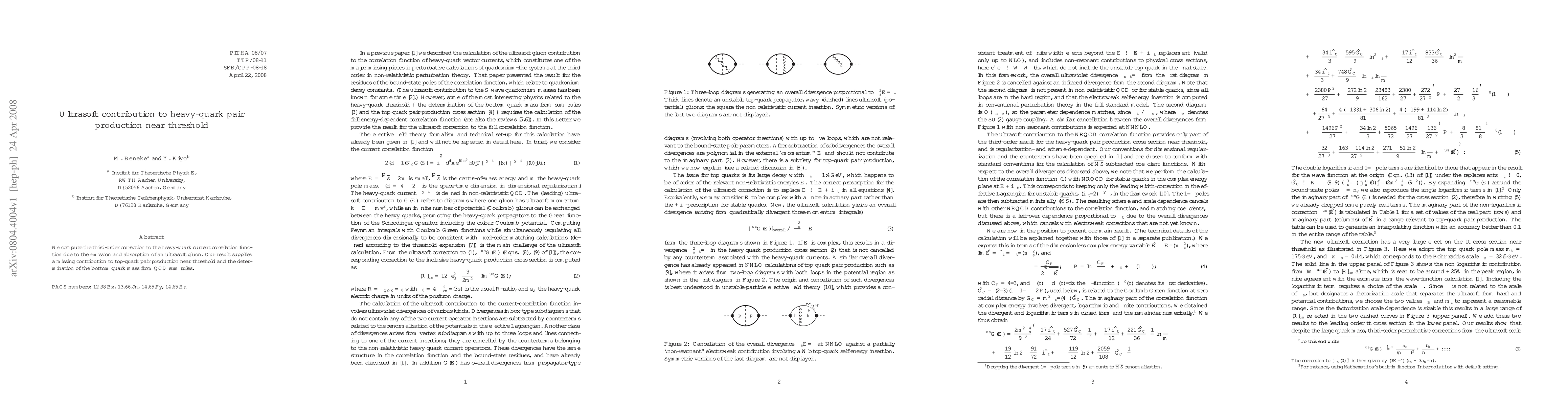 This paper calculates the third-order correction to the heavy-quark current correlation function, addressing the ultrasoft gluon emission and absorption, which provides a crucial contribution to top-quark pair production near threshold and the determination of the bottom quark mass from QCD sum rules.