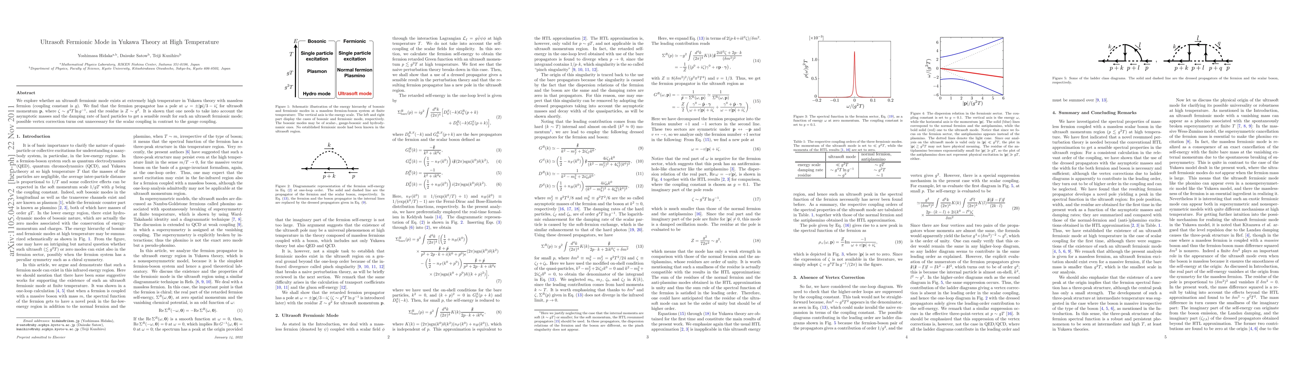 This paper investigates the existence of an ultrasoft fermionic mode in Yukawa theory at high temperatures, finding a pole in the fermion propagator indicating such a mode, with a residue dependent on the coupling constant and temperature. The study emphasizes the necessity of considering asymptotic masses and damping rates for accurate results.