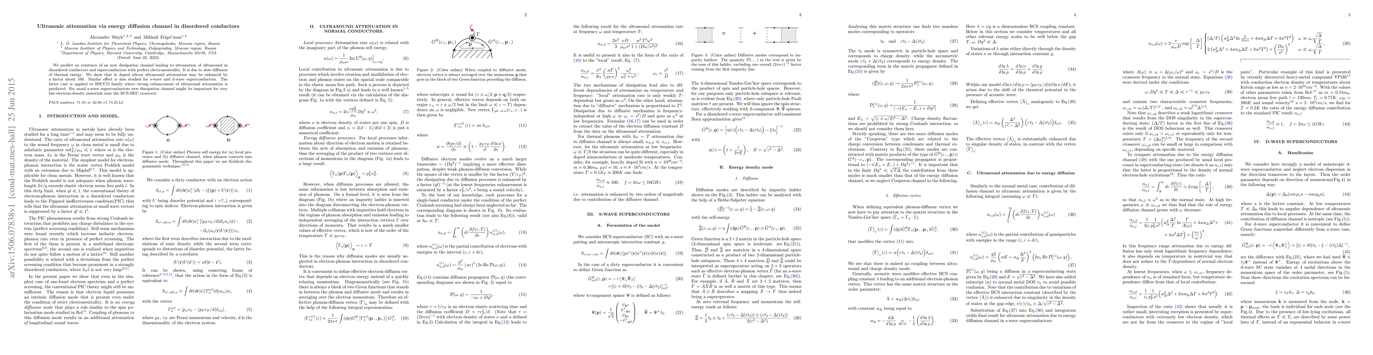 The research predicts a novel ultrasound attenuation mechanism in disordered conductors, attributed to thermal energy diffusion. This effect could significantly amplify ultrasound attenuation in doped silicon by approximately 100 times, and similarly impact s-wave and d-wave superconductors, particularly in the BSCCO family. The new dissipation channel may also be crucial for very low-density materials near the BCS-BEC crossover in usual s-wave superconductors.