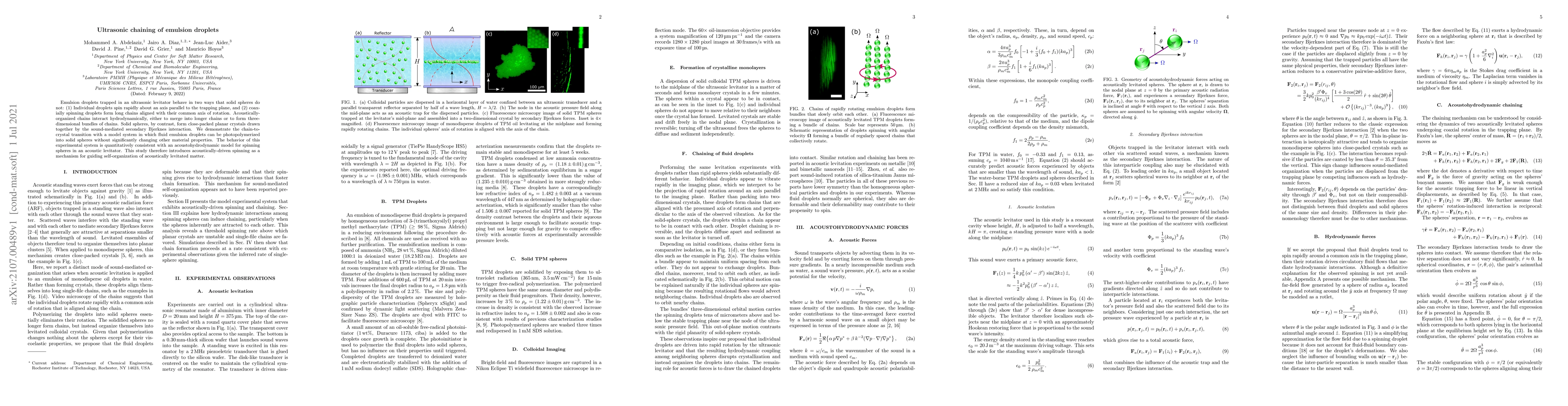Researchers discovered that ultrasonic levitation can create chains of emulsion droplets through rapid spinning, which then interact to form 3D bundles, unlike solid spheres that form crystals. This finding introduces a new mechanism for guiding self-organization in acoustically levitated matter.