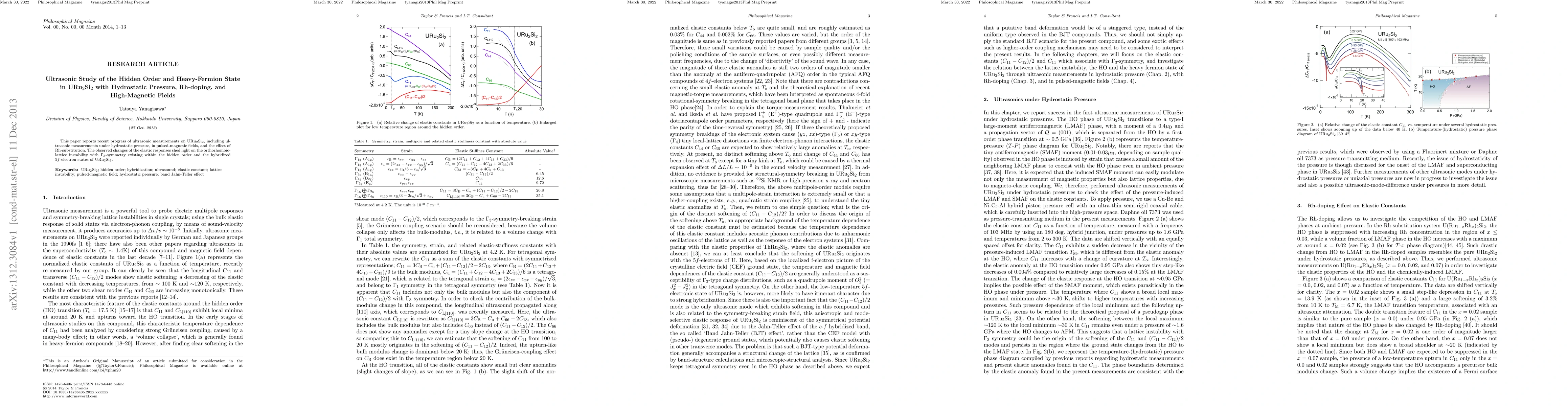 This paper investigates the hidden order and heavy-fermion state in URu$_2$Si$_2$ through ultrasonic measurements under hydrostatic pressure, Rh-doping, and high magnetic fields, revealing orthorhombic-lattice instability and $\Gamma_3$-symmetry within the material's electronic structure.