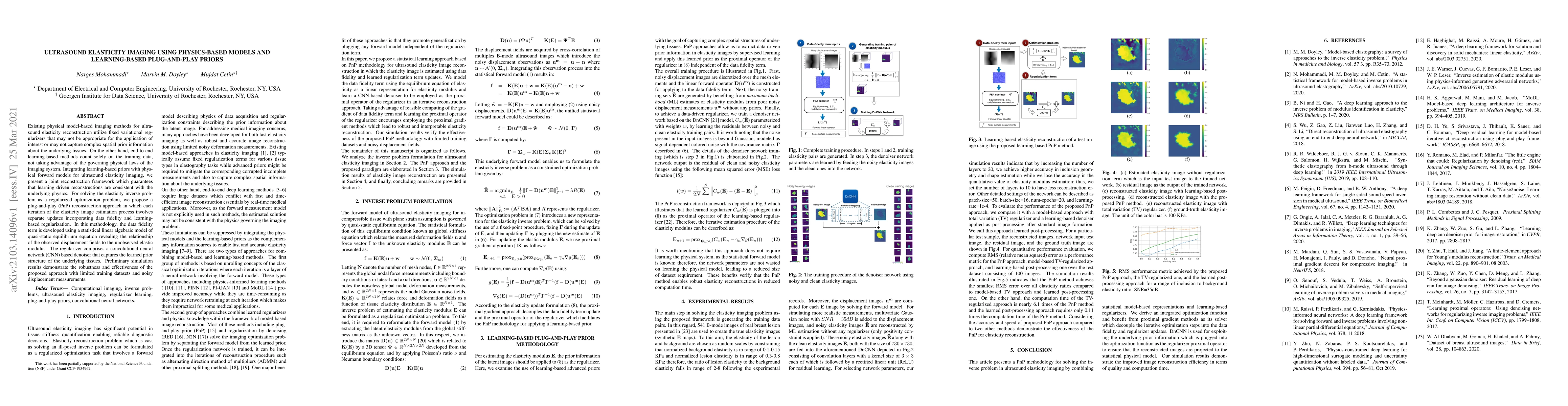 The paper presents a novel PnP framework for ultrasound elasticity imaging, merging physics-based models with learning-based regularization, ensuring reconstructed images align with physical principles.