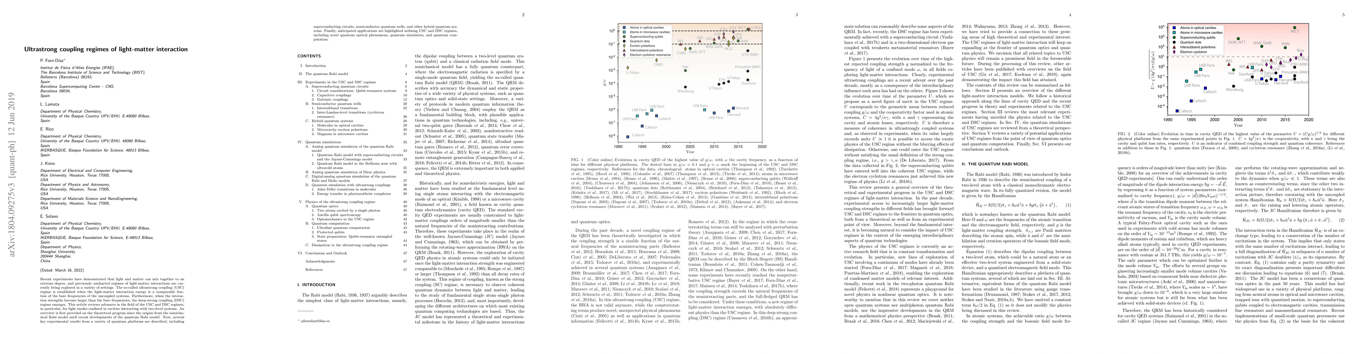 This paper reviews advancements in ultrastrong and deep-strong coupling regimes of light-matter interactions, focusing on theoretical developments from the semiclassical to quantum Rabi models and experimental results across various quantum platforms, concluding with potential applications in quantum optics, simulation, and computation.