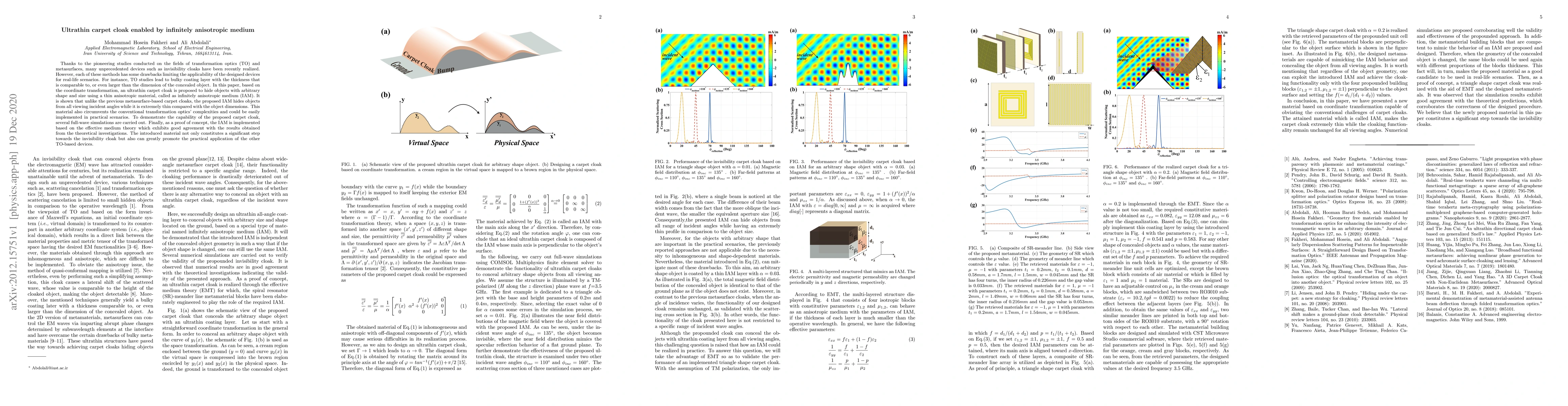 This paper proposes an ultrathin carpet cloak using an infinitely anisotropic medium (IAM) to hide objects of any shape and size, overcoming the bulkiness of traditional transformation optics cloaks. The IAM enables invisibility from all angles while being significantly thinner, thus facilitating practical applications.