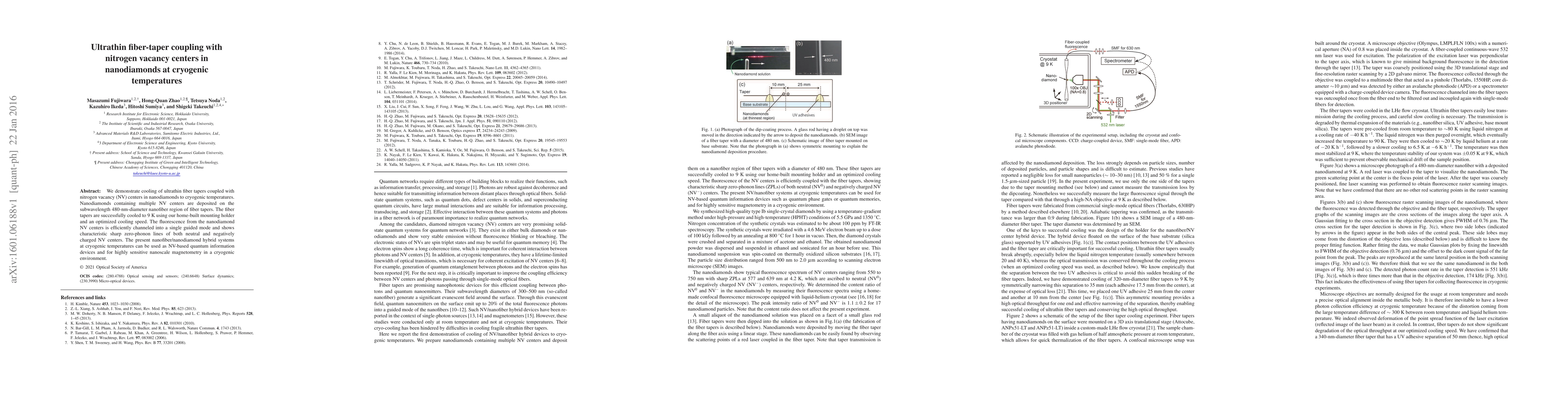 This study demonstrates cooling of ultrathin fiber tapers coupled with nitrogen vacancy centers in nanodiamonds to 9 K, efficiently channeling their fluorescence into a single guided mode for potential use in quantum information and nanoscale magnetometry.