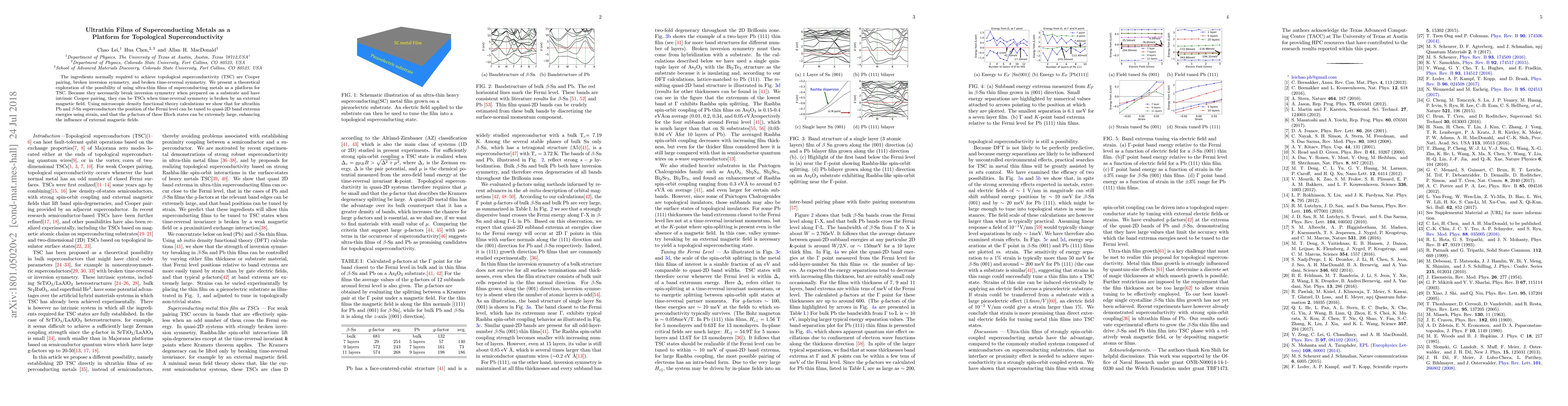Researchers propose using ultrathin films of superconducting metals as a platform for topological superconductivity, achieving TSC when broken time-reversal symmetry is induced by an external magnetic field.
