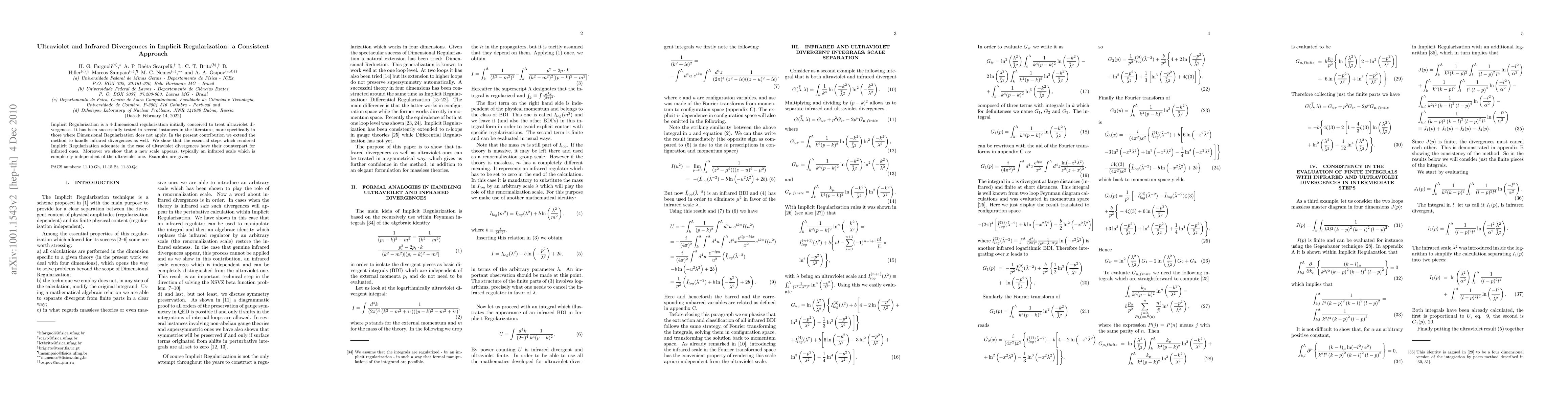 This paper extends Implicit Regularization, originally designed to address ultraviolet divergences, to also handle infrared divergences. It demonstrates that the method's effective steps for ultraviolet issues apply equally to infrared problems, introducing an independent infrared scale distinct from the ultraviolet one.