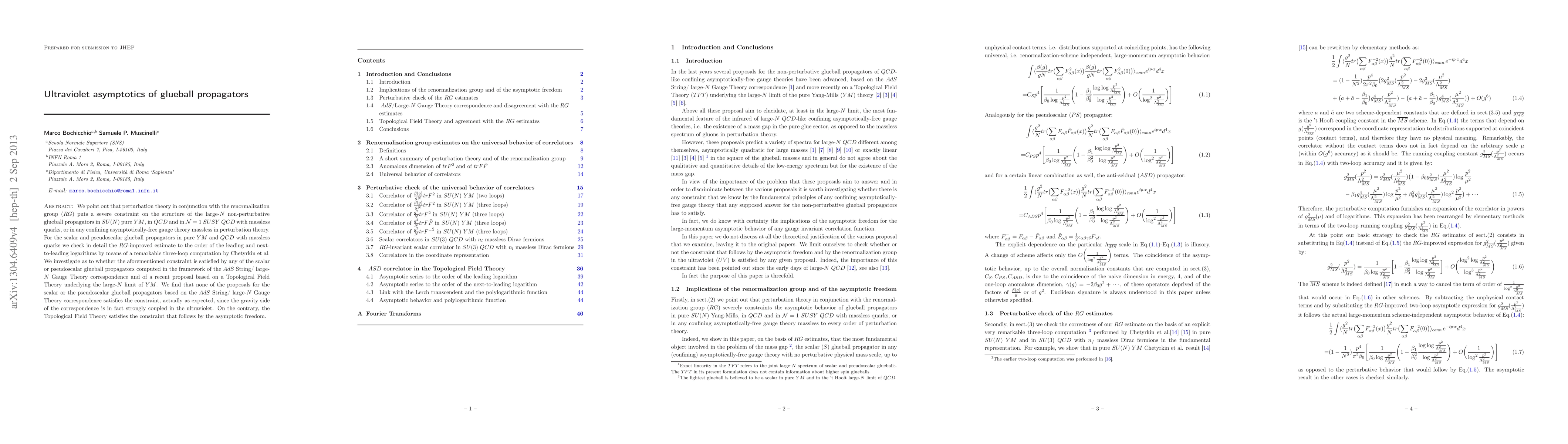 We point out that perturbation theory in conjunction with the renormalization group (RG) puts a severe constraint on the structure of the large-N non-perturbative glueball propagators in SU(N) pure YM, in QCD and in n=1 SUSY QCD with massless quarks, or in any confining asymptotically-free gauge theory massless in perturbation theory. For the scalar and pseudoscalar glueball propagators in pure YM and QCD with massless quarks we check in detail the RG-improved estimate to the order of the leading and next-to-leading logarithms by means of a remarkable three-loop computation by Chetyrkin et al. We investigate as to whether the aforementioned constraint is satisfied by any of the scalar or pseudoscalar glueball propagators computed in the framework of the AdS String/ large-N Gauge Theory correspondence and of a recent proposal based on a Topological Field Theory underlying the large-N limit of YM. We find that none of the proposals for the scalar or the pseudoscalar glueball propagators based on the AdS String/ large-N Gauge Theory correspondence satisfies the constraint, actually as expected, since the gravity side of the correspondence is in fact strongly coupled in the ultraviolet. On the contrary, the Topological Field Theory satisfies the constraint that follows by the asymptotic freedom.