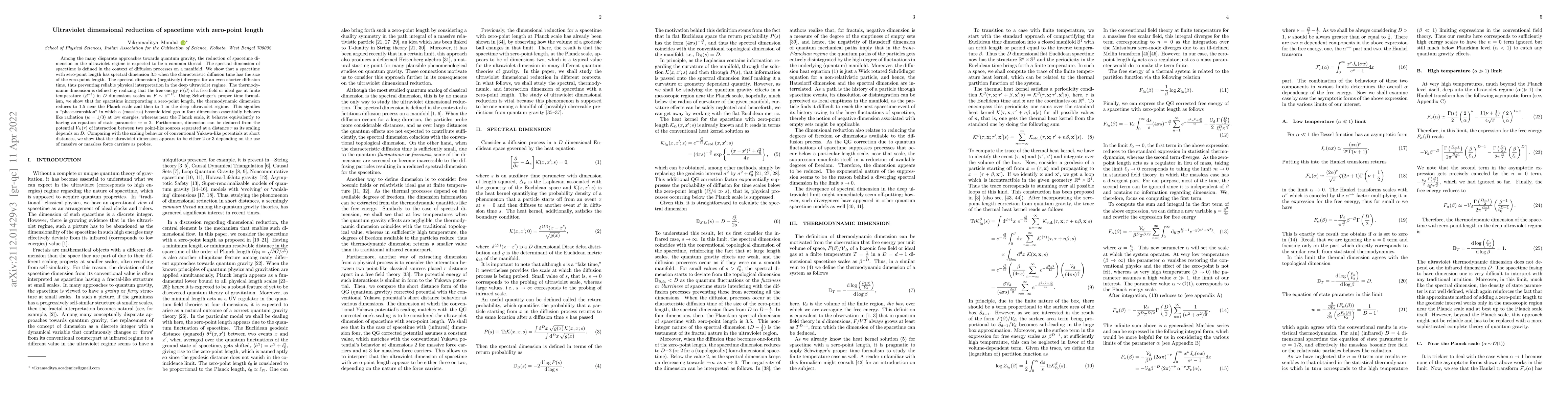 This paper explores the ultraviolet dimensional reduction of spacetime incorporating a zero-point length, demonstrating that its spectral dimension is $3.5$ and thermodynamically reduces to $1.5$ near the Planck scale, ultimately becoming $1$ in the deep ultraviolet. The study highlights a phase transition in the behavior of a massless bosonic ideal gas.