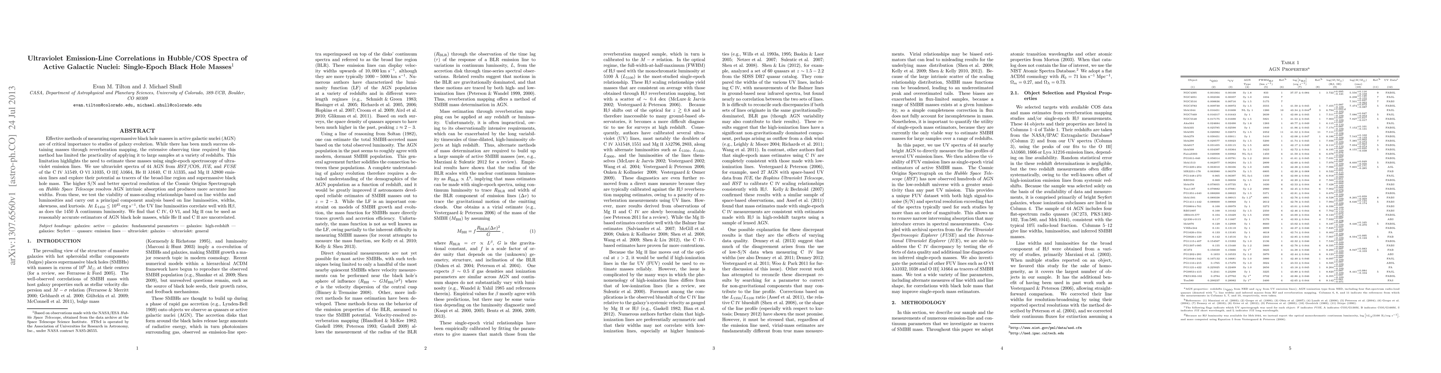 Effective methods of measuring supermassive black hole masses in active galactic nuclei (AGN) are of critical importance to studies of galaxy evolution. While there has been much success obtaining masses through reverberation mapping, the extensive observing time required by this method has limited the practicality of applying it to large samples at a variety of redshifts. This limitation highlights the need to estimate these masses using single-epoch spectroscopy of ultraviolet emission lines. We use ultraviolet spectra of 44 AGN from HST/COS, IUE, and FUSE of the CIV 1549, OVI 1035, OIII] 1664, HeII 1640, CII 1335, and MgII 2800 emission lines and explore their potential as tracers of the broad-line region and supermassive black hole mass. The higher S/N and better spectral resolution of the Cosmic Origins Spectrograph on Hubble Space Telescope resolves AGN intrinsic absorption and produces more accurate line widths. From these, we test the viability of mass-scaling relationships based on line widths and luminosities and carry out a principal component analysis based on line luminosities, widths, skewness, and kurtosis. At L_{1450} < 10^{45} erg/s, the UV line luminosities correlate well with Hbeta, as does the 1450 Angstrom continuum luminosity. We find that CIV, OVI, and MgII can be used as reasonably accurate estimators of AGN black hole masses, while HeII and CII are uncorrelated.