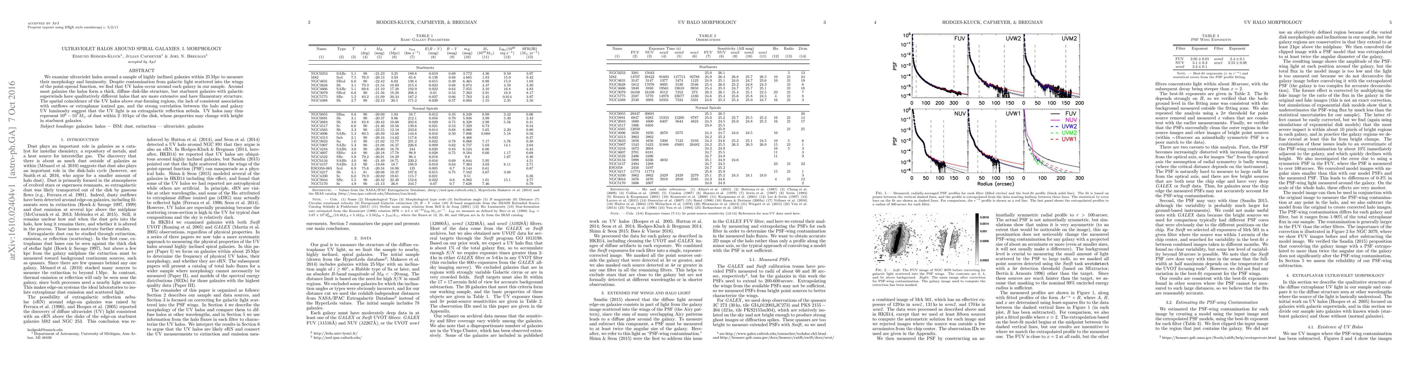 We examine ultraviolet halos around a sample of highly inclined galaxies within 25 Mpc to measure their morphology and luminosity. Despite contamination from galactic light scattered into the wings of the point-spread function, we find that UV halos occur around each galaxy in our sample. Around most galaxies the halos form a thick, diffuse disk-like structure, but starburst galaxies with galactic superwinds have qualitatively different halos that are more extensive and have filamentary structure. The spatial coincidence of the UV halos above star-forming regions, the lack of consistent association with outflows or extraplanar ionized gas, and the strong correlation between the halo and galaxy UV luminosity suggest that the UV light is an extragalactic reflection nebula. UV halos may thus represent 1-10 million solar masses of dust within 2-10 kpc of the disk, whose properties may change with height in starburst galaxies.
