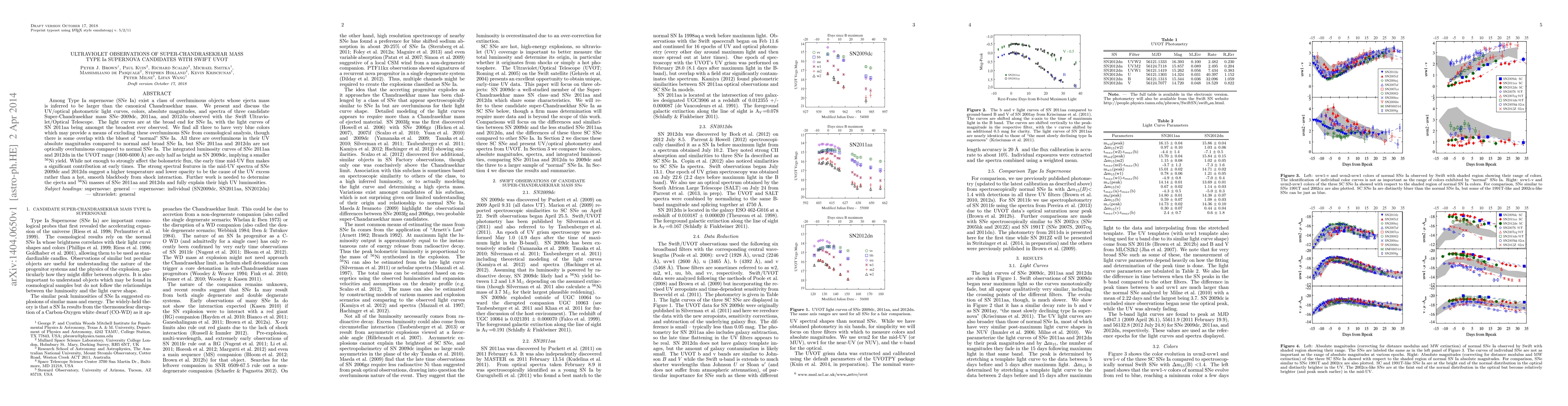 Among Type Ia supernovae (SNe~Ia) exist a class of overluminous objects whose ejecta mass is inferred to be larger than the canonical Chandrasekhar mass. We present and discuss the UV/optical photometric light curves, colors, absolute magnitudes, and spectra of three candidate Super-Chandrasekhar mass SNe--2009dc, 2011aa, and 2012dn--observed with the Swift Ultraviolet/Optical Telescope. The light curves are at the broad end for SNe Ia, with the light curves of SN~2011aa being amongst the broadest ever observed. We find all three to have very blue colors which may provide a means of excluding these overluminous SNe from cosmological analysis, though there is some overlap with the bluest of "normal" SNe Ia. All three are overluminous in their UV absolute magnitudes compared to normal and broad SNe Ia, but SNe 2011aa and 2012dn are not optically overluminous compared to normal SNe Ia. The integrated luminosity curves of SNe 2011aa and 2012dn in the UVOT range (1600-6000 Angstroms) are only half as bright as SN~2009dc, implying a smaller 56Ni yield. While not enough to strongly affect the bolometric flux, the early time mid-UV flux makes a significant contribution at early times. The strong spectral features in the mid-UV spectra of SNe 2009dc and 2012dn suggest a higher temperature and lower opacity to be the cause of the UV excess rather than a hot, smooth blackbody from shock interaction. Further work is needed to determine the ejecta and 56Ni masses of SNe 2011aa and 2012dn and fully explain their high UV luminosities.