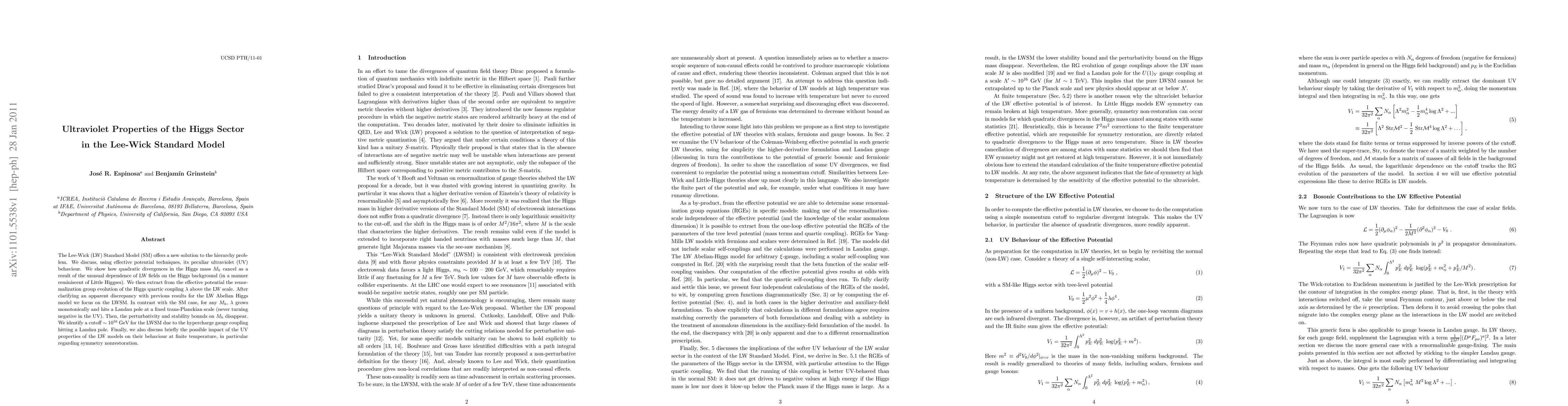 The Lee-Wick (LW) Standard Model (SM) offers a new solution to the hierarchy problem. We discuss, using effective potential techniques, its peculiar ultraviolet (UV) behaviour. We show how quadratic divergences in the Higgs mass Mh cancel as a result of the unusual dependence of LW fields on the Higgs background (in a manner reminiscent of Little Higgses). We then extract from the effective potential the renormalization group evolution of the Higgs quartic coupling lambda above the LW scale. After clarifying an apparent discrepancy with previous results for the LW Abelian Higgs model we focus on the LWSM. In contrast with the SM case, for any Mh, lambda grows monotonically and hits a Landau pole at a fixed trans-Planckian scale (never turning negative in the UV). Then, the perturbativity and stability bounds on Mh disappear. We identify a cutoff ~10^{16} GeV for the LWSM due to the hypercharge gauge coupling hitting a Landau pole. Finally, we also discuss briefly the possible impact of the UV properties of the LW models on their behaviour at finite temperature, in particular regarding symmetry nonrestoration.