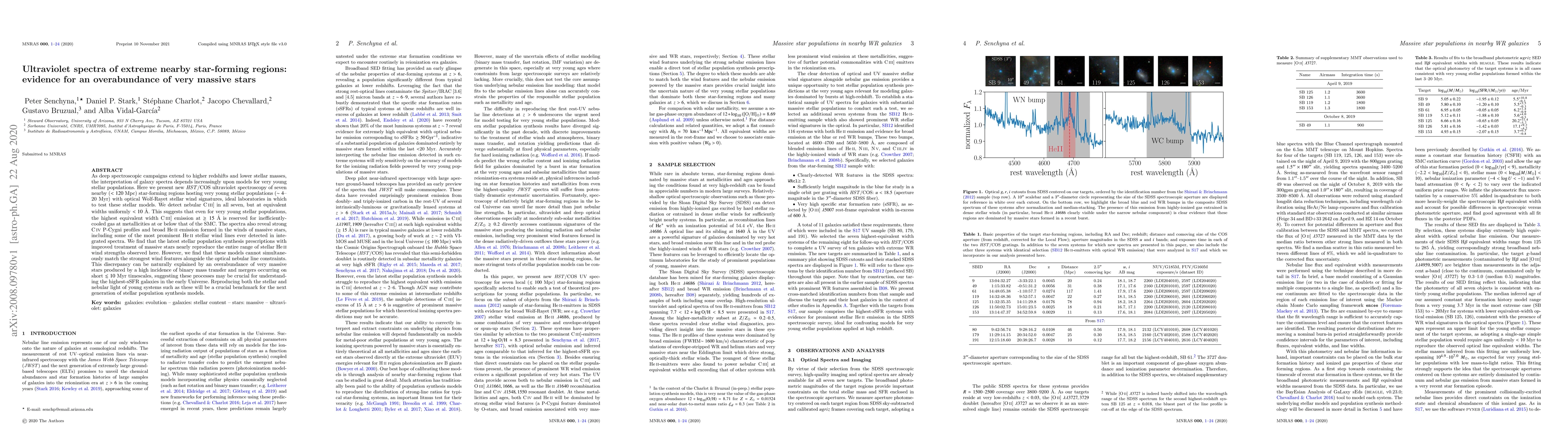 This paper uses HST/COS ultraviolet spectroscopy to study seven nearby star-forming regions, revealing strong evidence for an overabundance of very massive stars. The findings indicate that current stellar population models struggle to simultaneously match observed stellar wind features and nebular lines, suggesting that binary mass transfer and mergers may be key processes in the formation of these stars.