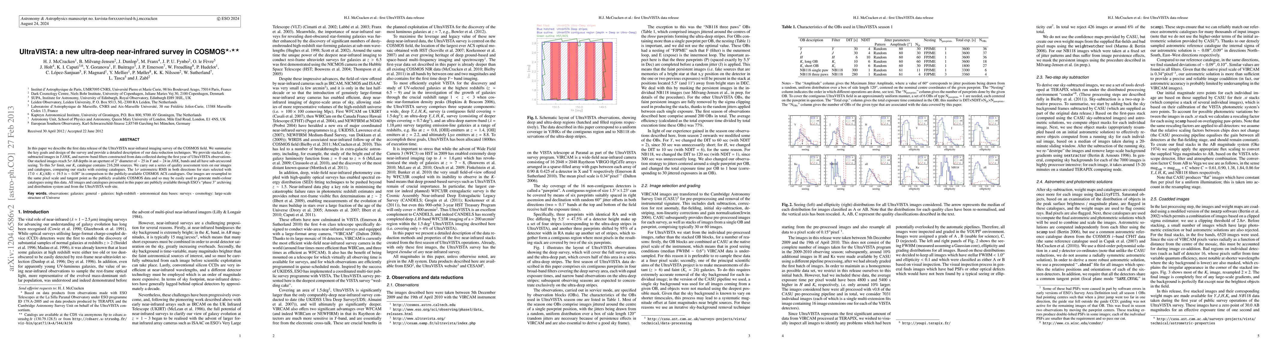 year of UltraVISTA observations. Our stacked images reach $5\sigma$ $AB$ depths