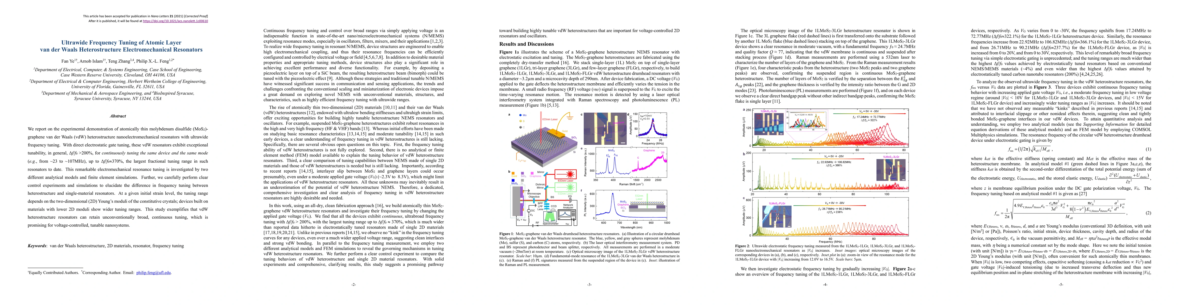 This study demonstrates atomically thin MoS2-graphene van der Waals heterostructure nanoelectromechanical resonators with ultrawide frequency tuning, achieving fractional tuning ranges up to 370%. The exceptional tunability is attributed to the lower 2D Young's moduli of the constituent materials, showing potential for voltage-controlled, tunable nanosystems.