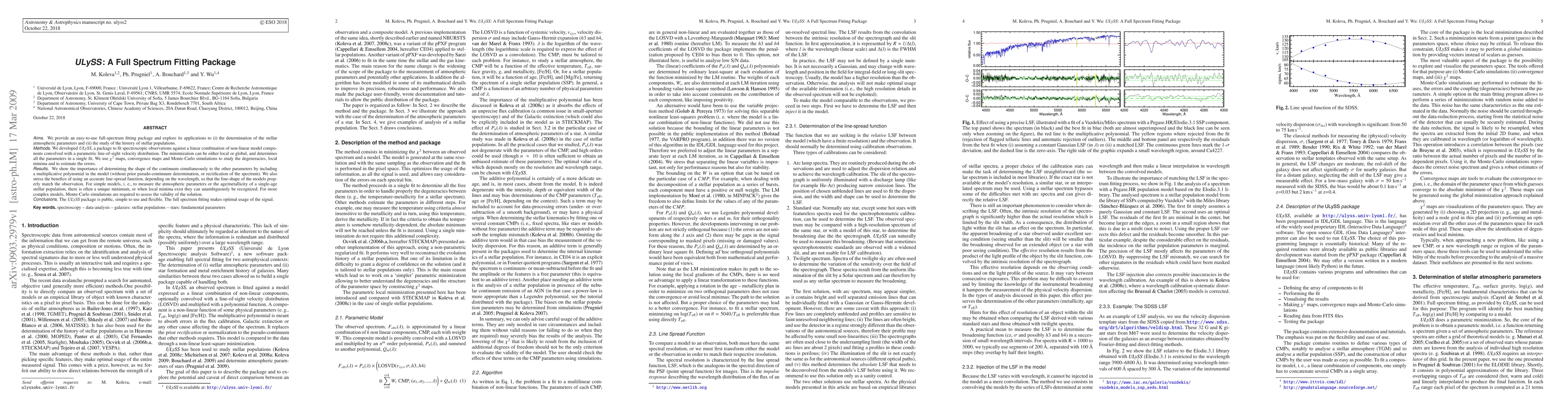 ULySS is a user-friendly full-spectrum fitting package designed to determine stellar atmospheric parameters and study stellar population histories by fitting spectroscopic observations against a combination of non-linear models. It effectively handles complex models through Monte-Carlo simulations, ensuring accurate parameter determination.