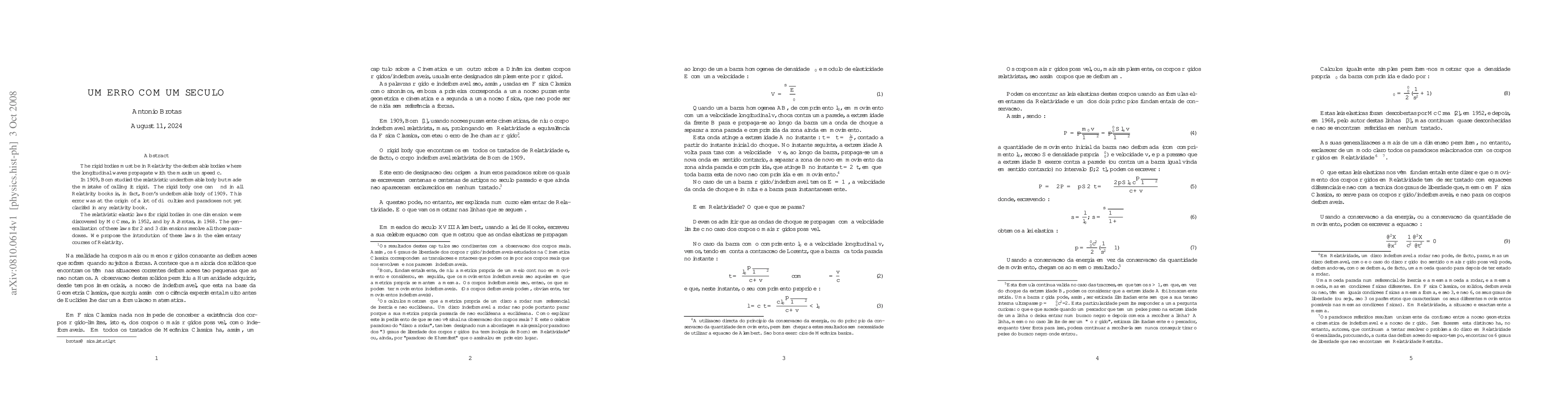 The "rigid bodies" must be in Relativity the "deformable bodies" where the longitudinal waves propagate with the maximun speed $c$. In 1909, Born studied the "relativistic underformable body" but made the mistake of calling it "rigid". The "rigid body" one can find in all Relativity books is, in fact, Born's "undeformable body" of 1909. This error was at the origin of a lot of difficulties and paradoxes not yet clarifed in any relativity book. The "relativistic elastic laws for rigid bodies in one dimension" were discovered by Mc Crea, in 1952, and by A.Brotas, in 1968. The generalization of these laws for 2 and 3 dimensions resolve all those paradoxes. We propose the introdution of these laws in the elementary courses of Relativity.