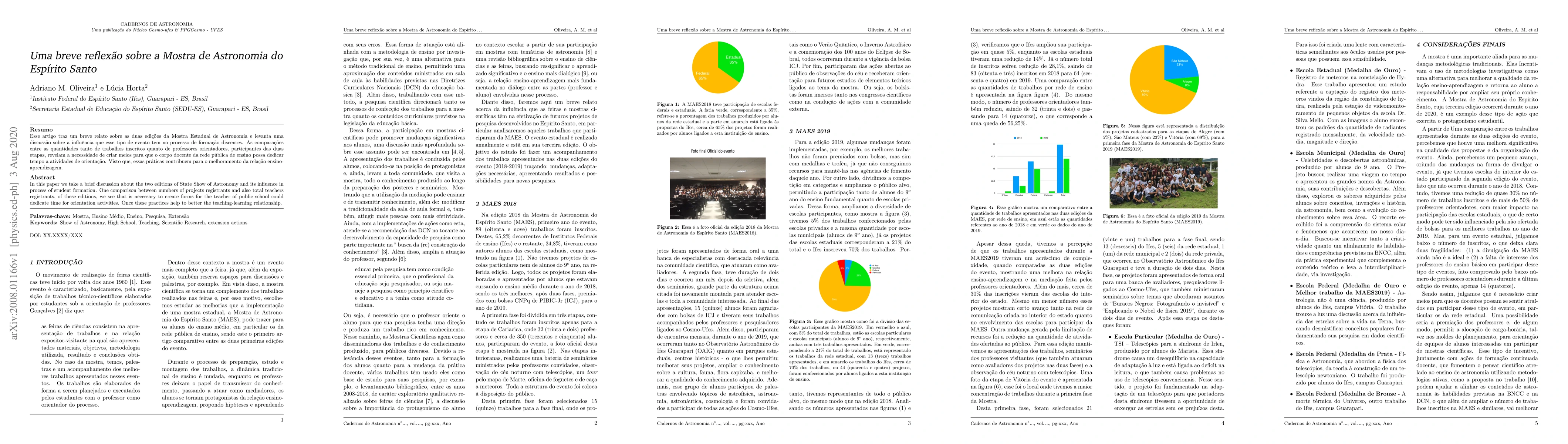In this paper we take a brief discussion about the two editions of State Show of Astronomy and its influence in process of student formation. One comparison between numbers of projects registrants and also total teachers registrants, of these editions, we see that is necessary to create forms for the teacher of public school could dedicate time for orientation activities. Once these practices help to better the teaching-learning relationship.