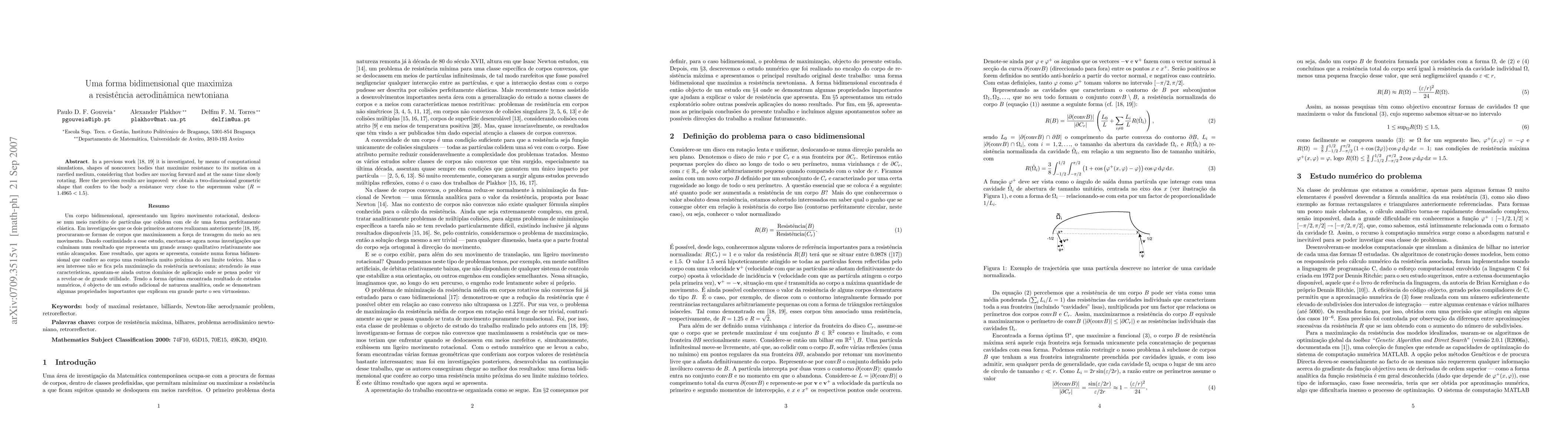 (English) In a previous work [Nonlinearity, 20:2271-2287, 2007; arXiv:math/0703895] it is investigated, by means of computational simulations, shapes of nonconvex bodies that maximize resistance to its motion on a rarefied medium, considering that bodies are moving forward and at the same time slowly rotating. Here the previous results are improved: we obtain a two-dimensional geometric shape that confers to the body a resistance very close to the supremum value (R=1.4965<1.5). ----- Resumo (Portuguese) Um corpo bidimensional, apresentando um ligeiro movimento rotacional, desloca-se num meio rarefeito de part\'iculas que colidem com ele de uma forma perfeitamente el\'astica. Em investiga\c{c}\~oes que os dois primeiros autores realizaram anteriormente [Nonlinearity, 20:2271-2287, 2007; arXiv:math/0703895], procuraram-se formas de corpos que maximizassem a for\c{c}a de travagem do meio ao seu movimento. Dando continuidade a esse estudo, encetam-se agora novas investiga\c{c}\~oes que culminam num resultado que representa um grande avan\c{c}o qualitativo relativamente aos previamente alcan\c{c}ados. Esse resultado, que agora se apresenta, consiste numa forma bidimensional que confere ao corpo uma resist\^encia muito pr\'oxima do seu limite te\'orico.