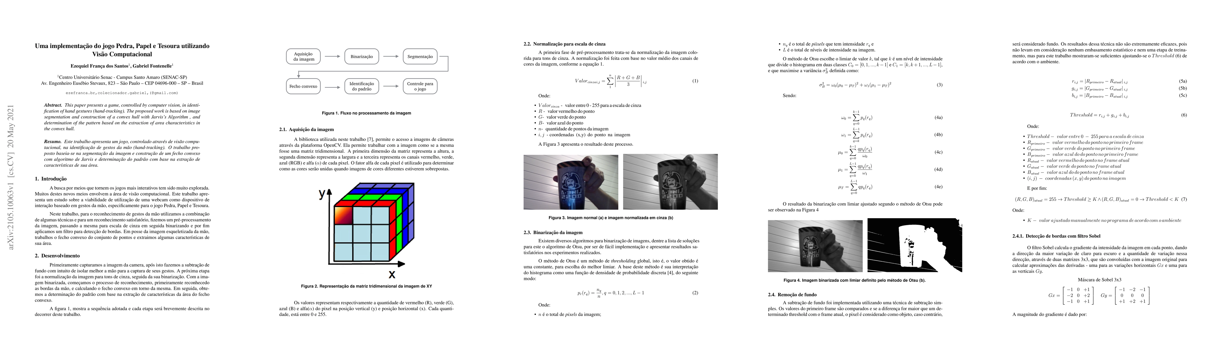 This paper presents a game, controlled by computer vision, in identification of hand gestures (hand-tracking). The proposed work is based on image segmentation and construction of a convex hull with Jarvis Algorithm , and determination of the pattern based on the extraction of area characteristics in the convex hull.