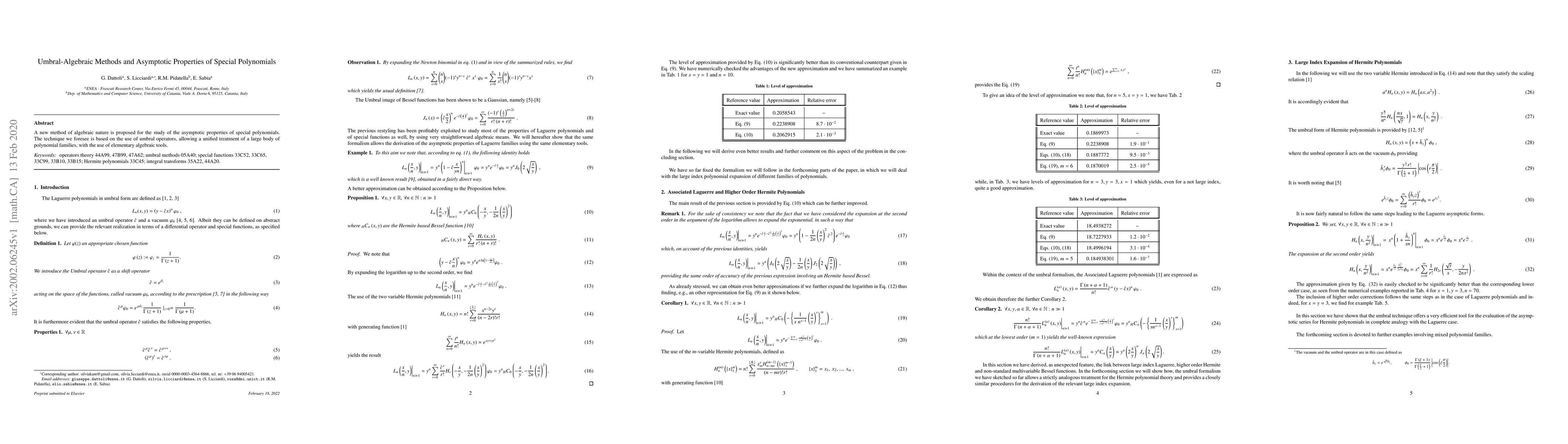 A new method of algebraic nature is proposed for the study of the asymptotic properties of special polynomials. The technique we foresee is based on the use of umbral operators, allowing a unified treatment of a large body of polynomial families, with the use of elementary algebraic tools.