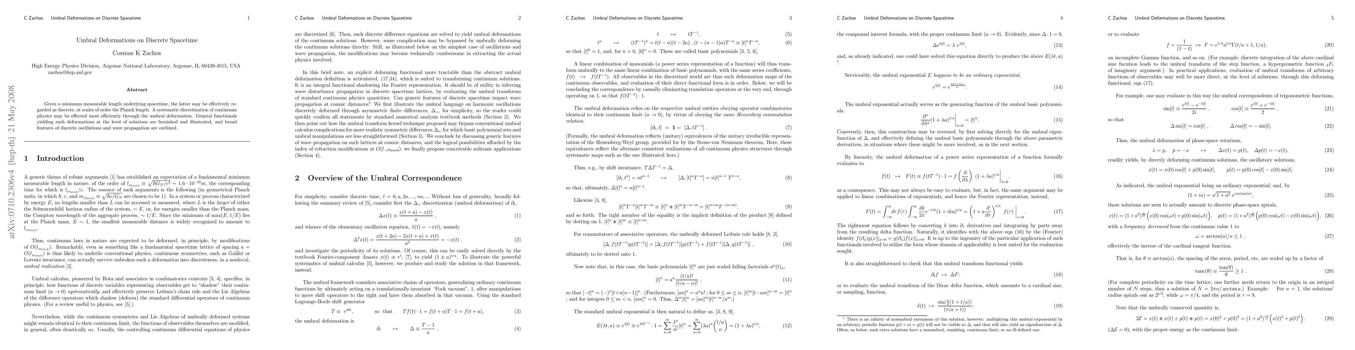 Research proposes that spacetime can be viewed as discrete at small scales, using a method called umbral deformation to systematically discretize continuum physics. This idea has implications for understanding wave propagation and oscillations in the universe.