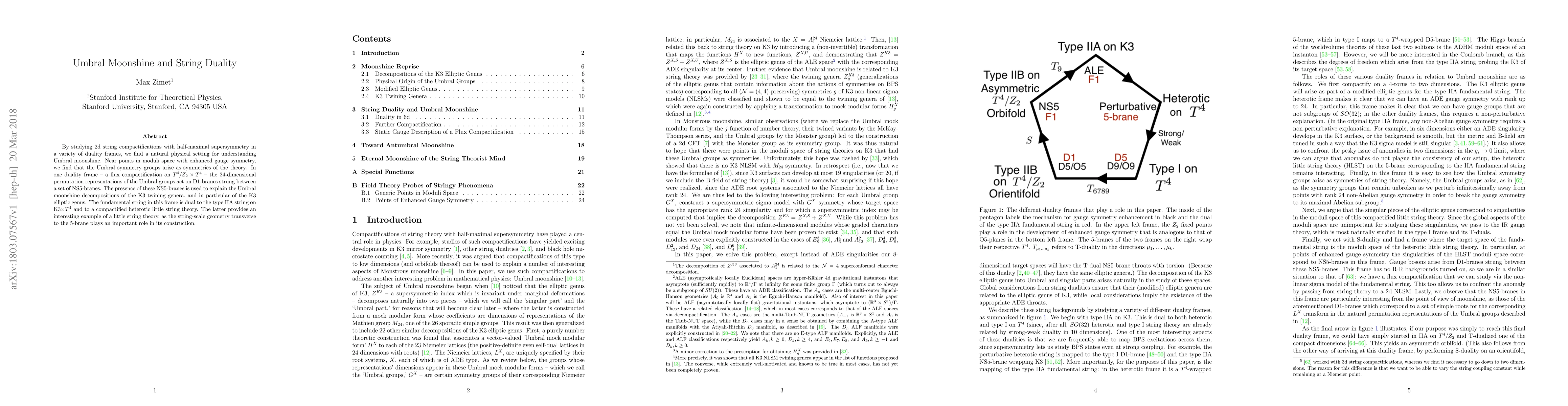 By studying 2d string compactifications with half-maximal supersymmetry in a variety of duality frames, we find a natural physical setting for understanding Umbral moonshine. Near points in moduli space with enhanced gauge symmetry, we find that the Umbral symmetry groups arise as symmetries of the theory. In one duality frame -- a flux compactification on $T^4/Z_2\times T^4$ -- the 24-dimensional permutation representations of the Umbral groups act on D1-branes strung between a set of NS5-branes. The presence of these NS5-branes is used to explain the Umbral moonshine decompositions of the K3 twining genera, and in particular of the K3 elliptic genus. The fundamental string in this frame is dual to the type IIA string on K3$\times T^4$ and to a compactified heterotic little string theory. The latter provides an interesting example of a little string theory, as the string-scale geometry transverse to the 5-brane plays an important role in its construction.