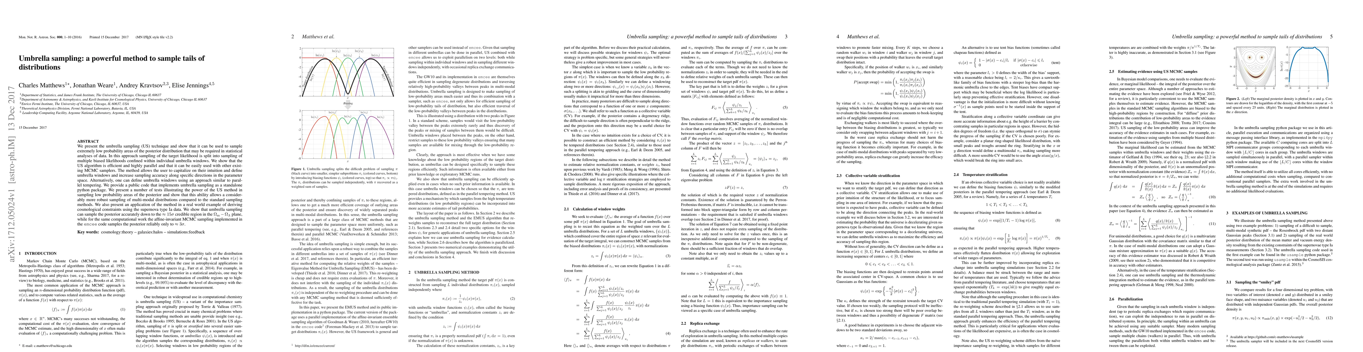 We present the umbrella sampling (US) technique and show that it can be used to sample extremely low probability areas of the posterior distribution that may be required in statistical analyses of data. In this approach sampling of the target likelihood is split into sampling of multiple biased likelihoods confined within individual umbrella windows. We show that the US algorithm is efficient and highly parallel and that it can be easily used with other existing MCMC samplers. The method allows the user to capitalize on their intuition and define umbrella windows and increase sampling accuracy along specific directions in the parameter space. Alternatively, one can define umbrella windows using an approach similar to parallel tempering. We provide a public code that implements umbrella sampling as a standalone python package. We present a number of tests illustrating the power of the US method in sampling low probability areas of the posterior and show that this ability allows a considerably more robust sampling of multi-modal distributions compared to the standard sampling methods. We also present an application of the method in a real world example of deriving cosmological constraints using the supernova type Ia data. We show that umbrella sampling can sample the posterior accurately down to the $\approx 15\sigma$ credible region in the $\Omega_{\rm m}-\Omega_\Lambda$ plane, while for the same computational work the affine-invariant MCMC sampling implemented in the {\tt emcee} code samples the posterior reliably only to $\approx 3\sigma$.