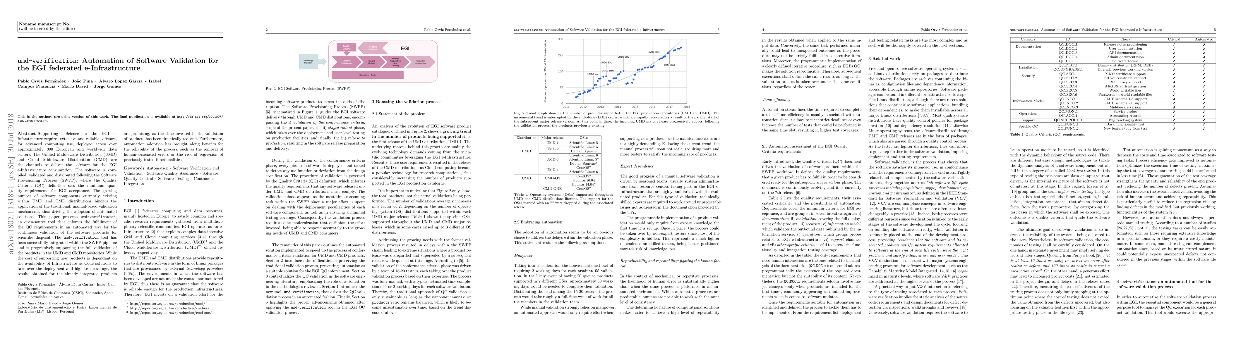 A new open-source tool, umd-verification, automates software validation for the EGI e-Infrastructure, reducing manual validation time and increasing reliability.