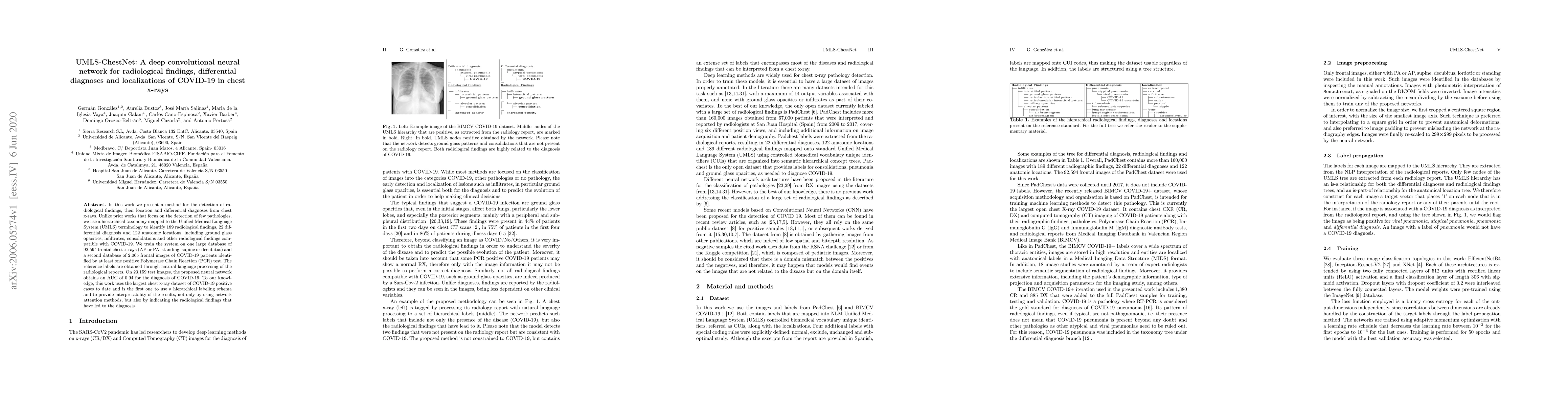 This paper introduces UMLS-ChestNet, a deep convolutional neural network that detects 189 radiological findings, 22 differential diagnoses, and 122 anatomical locations in chest x-rays, including COVID-19-related features. It uses the largest dataset of COVID-19 positive chest x-rays and achieves an AUC of 0.94 for COVID-19 diagnosis, offering interpretability through hierarchical labeling and network attention methods.