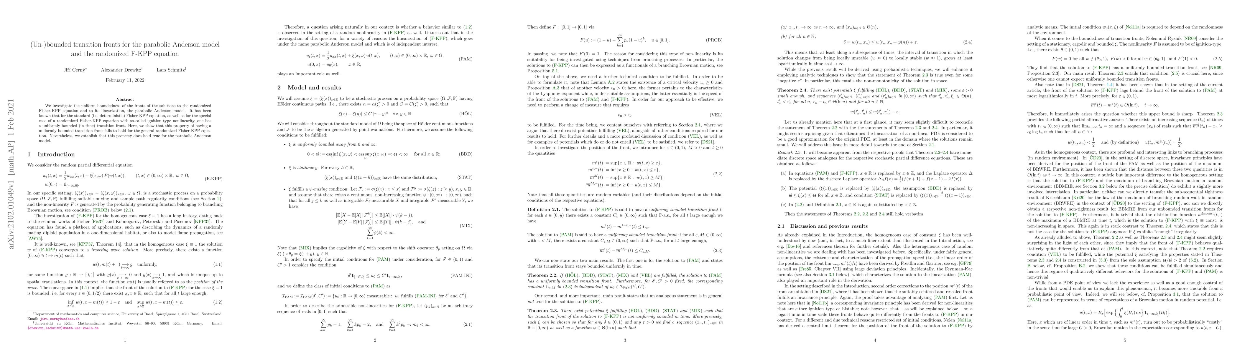 This paper explores the boundedness of transition fronts in the randomized Fisher-KPP equation and its linearization, the parabolic Anderson model. While the deterministic and ignition type randomized Fisher-KPP equations exhibit uniformly bounded fronts, the general randomized version does not, though the parabolic Anderson model retains this property.