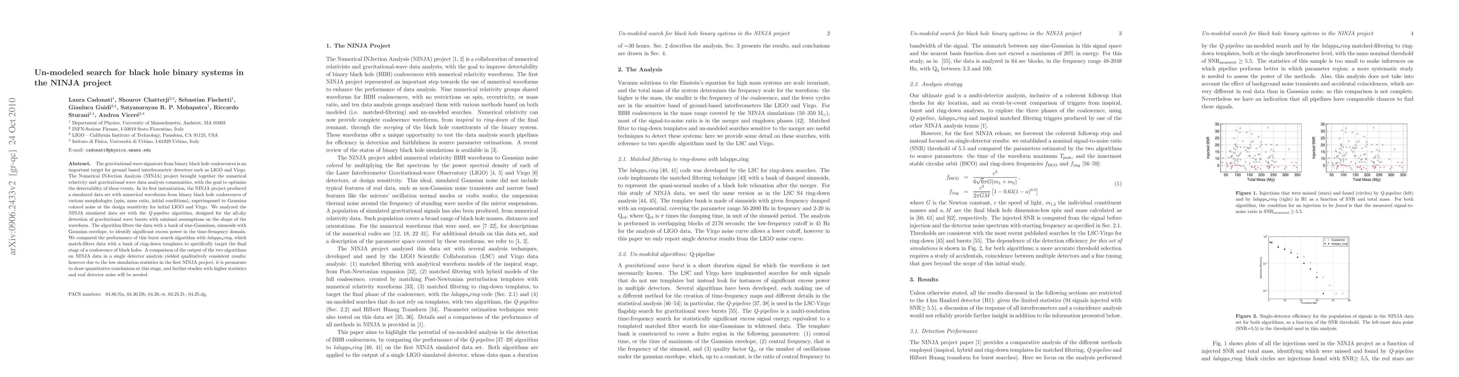 The NINJA project simulated binary black hole coalescences to optimize gravitational wave detection, employing the Q-pipeline algorithm for minimal assumptions detection. Initial results show qualitative consistency with matched filtering, though low simulation statistics prevent quantitative conclusions.