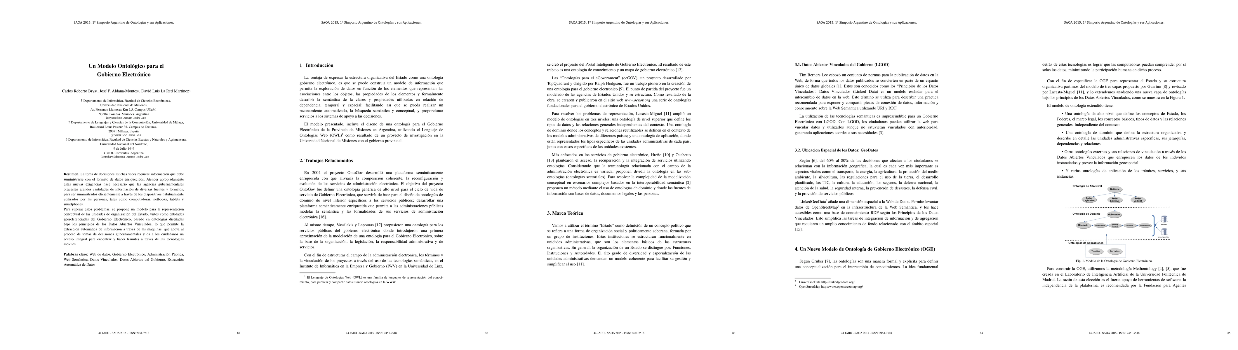 Decision making often requires information that must be Provided with the rich data format. Addressing these new requirements appropriately makes it necessary for government agencies to orchestrate large amounts of information from different sources and formats, to be efficiently delivered through the devices commonly used by people, such as computers, netbooks, tablets and smartphones. To overcome these problems, a model is proposed for the conceptual representation of the State's organizational units, seen as georeferenced entities of Electronic Government, based on ontologies designed under the principles of Linked Open Data, which allows the automatic extraction of information through the machines, which supports the process of governmental decision making and gives citizens full access to find and process through mobile technologies.