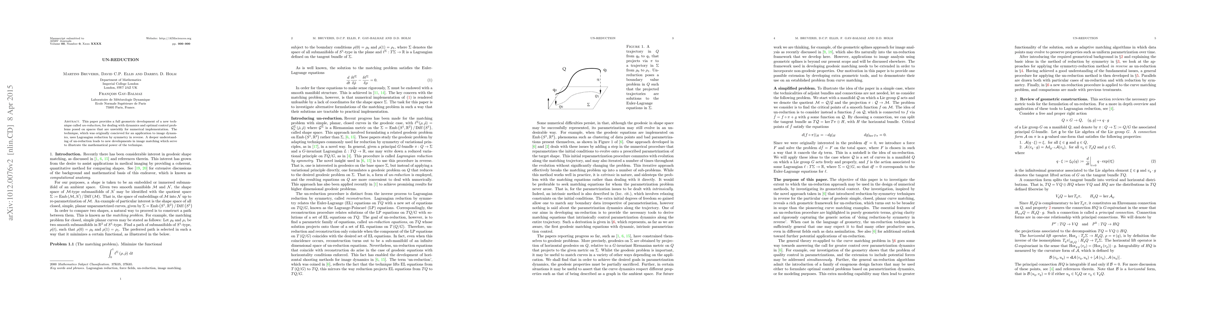 This paper provides a full geometric development of a new technique called un-reduction, for dealing with dynamics and optimal control problems posed on spaces that are unwieldy for numerical implementation. The technique, which was originally concieved for an application to image dynamics, uses Lagrangian reduction by symmetry in reverse. A deeper understanding of un-reduction leads to new developments in image matching which serve to illustrate the mathematical power of the technique.