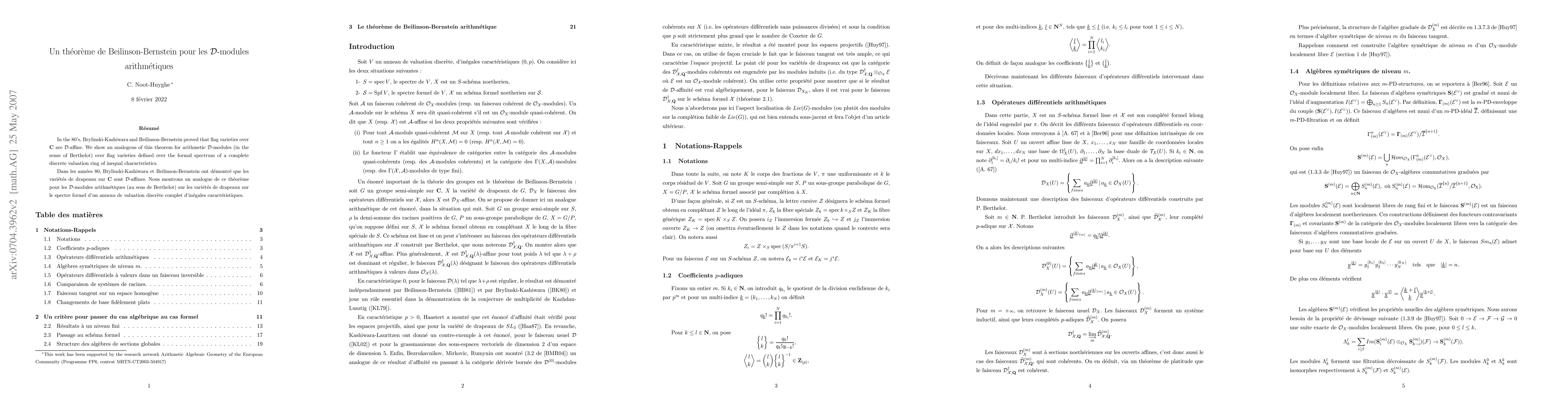 Summary: This paper establishes a Beilinson-Bernstein theorem for arithmetic D-modules on flag varieties, generalizing previous results for complex varieties and extending the framework to arithmetic settings. It introduces a new understanding in the context of arithmetic geometry.
